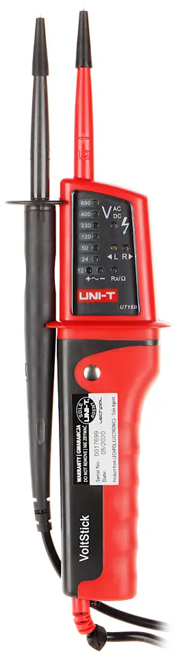 Miernik UT-15B pozwala na pomiar napięć AC, DC z zakresu 12 ... 690VPomiar wykonywany jest automatycznie po zetknięciu sond z punktami pomiaruUrządzenie samoczynnie dobiera odpowiedni zakres pomiarowy oraz informuje o nim użytkownika za pomocą diod umieszczonych ponad wyświetlaczem