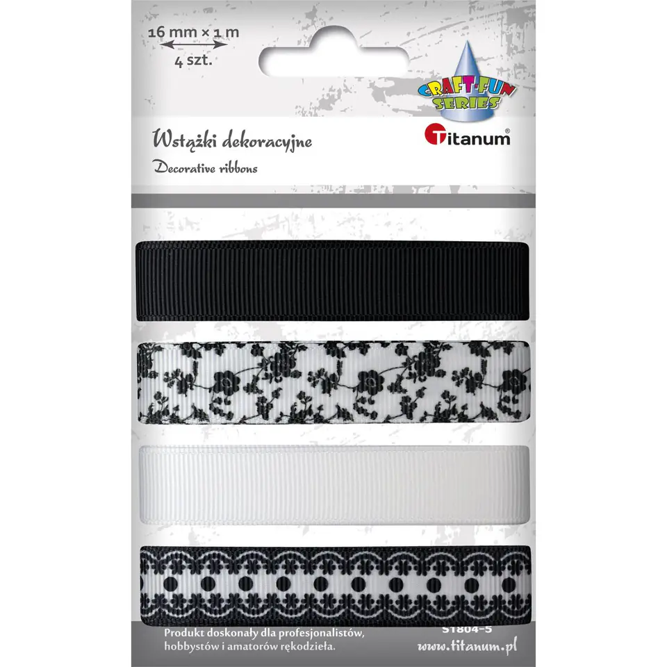 Wstążka czarno-biała mix 4szt.) 16mm x 1m 412504 TITANU