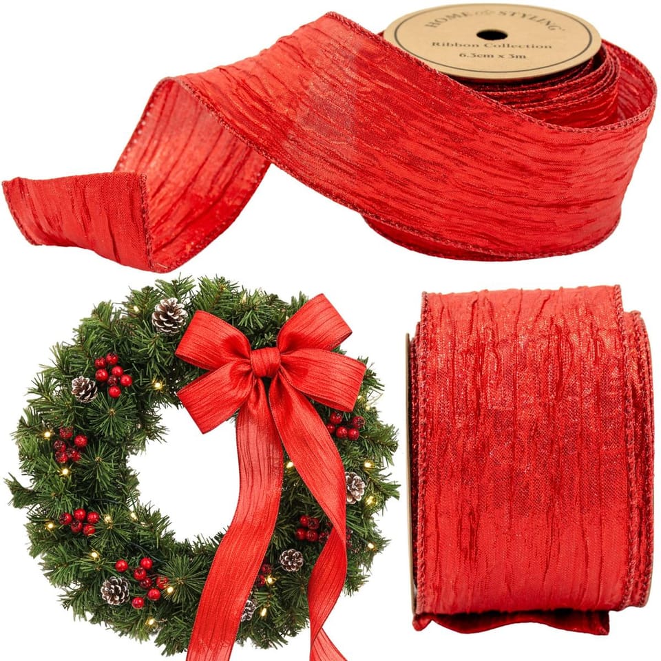 - szerokość 6,3 cm i długość 3 m idealna do większych dekoracjiw intensywny czerwonym kolorze z powałdowaną-karbowaną fakturąuniwersalne w zastosowaniu — prezenty, stroiki, wieńce, choinkiłatwa w użyciu nawet dla początkujących w dekoracjach DIYwzór i kolor sprawdzi się również przy dekoracjach urodzinowych czy walentynkowychwielorazowa i szybka w montażu