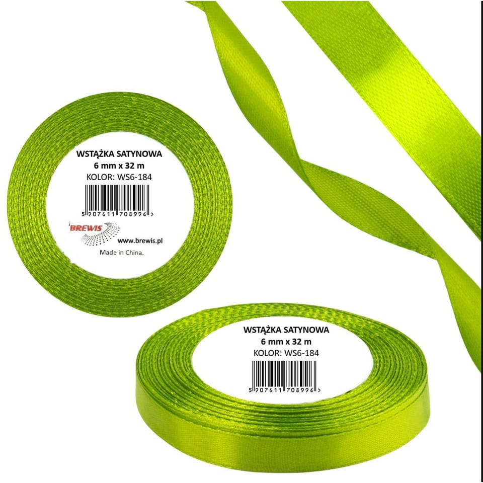 Wstążka satynowa 6mm/32m WS6-184 zieleń wiosenna BREWIS