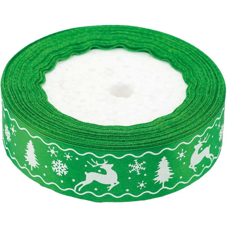 Wstążka satynowa Boże Narodzenie 25mm/22m zielona WSX25-16 BREWIS