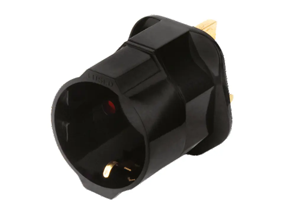 Przejściówka sieciowa z bezpiecznikiem wtyk UK na gniazdo SCHUKO z uziemieniem