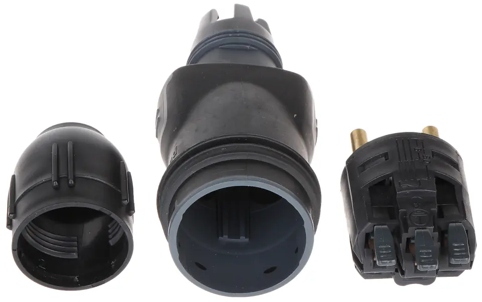 Gumowa wtyczka o podwyższonej szczelności i wytrzymałościAutomatyczne zaciski umożliwiają szybkie podłączenie przewoduWytrzymały dławik zapewnia uszczelnienie oraz umocowanie przewodu bez użycia narzędziOptymalna wytrzymałość uchwytu kabla wynosi maks. 30 kg przy 3x2.5 mm²Ergonomiczny uchwyt ułatwia wyjęcie wtyczki z gniazda