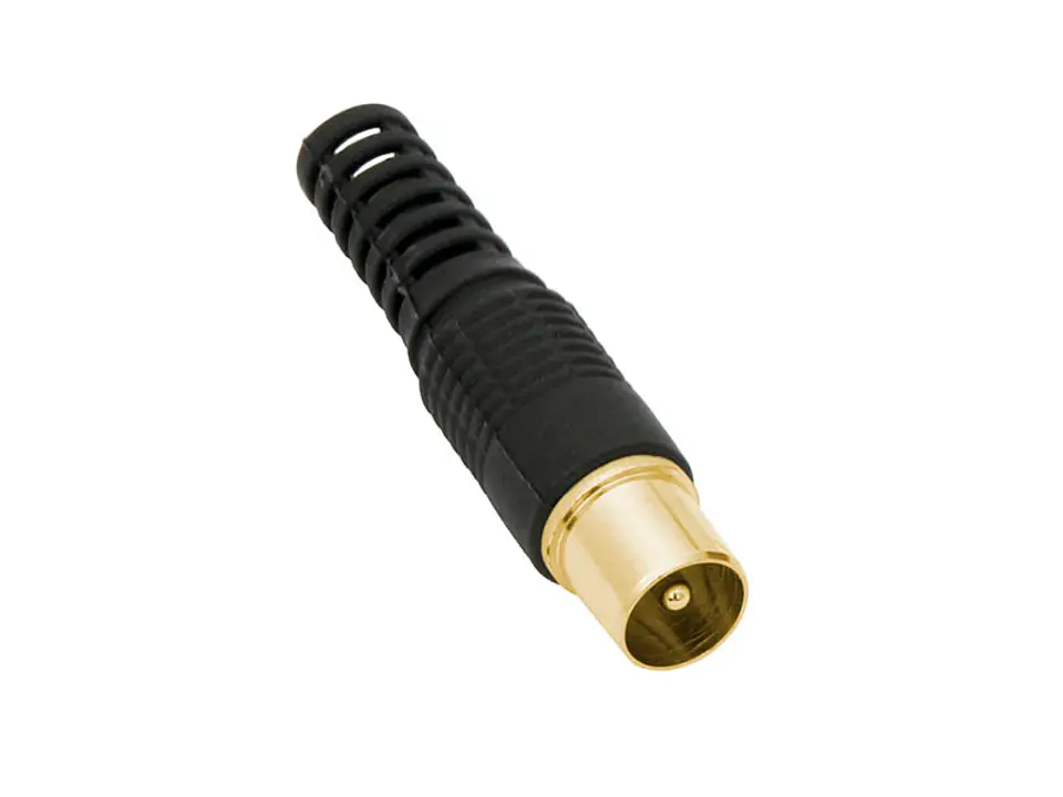 Długi i prosty wtyk antenowy w kolorze czarnym z pozłacaną końcówką.