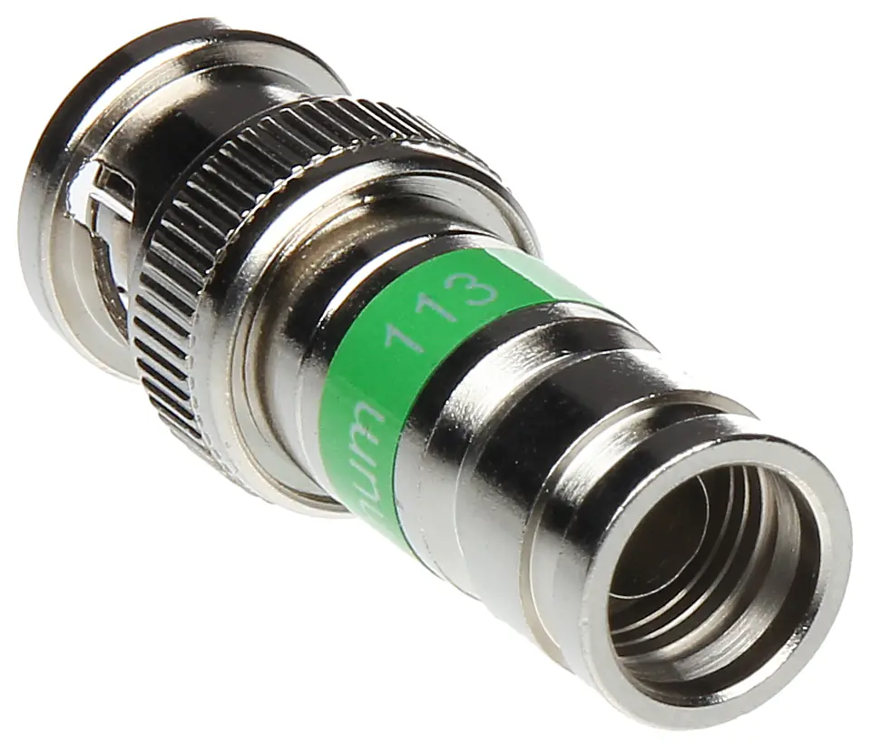 Złącze posiada dwa pełne pierścienie, które w wyniku procesu kompresji złącza (ściśnięcia wzdłużnego, poosiowego) uwypuklają się do wewnątrzProfesjonalny wtyk kompresyjny BNC-W/ZAC-TRI113/MSR spełnia wszystkie zalecenia stowarzyszenia SCTE (The Society of Cable Telecommunications Engineers) dla złącz tego typu