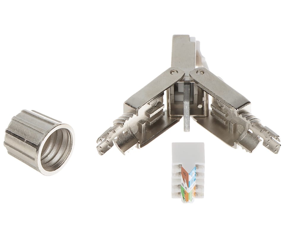 | Wybrane cechy: | Bardzo prosty i szybki montaż Pozłacane złącze zapobiega utlenianiu się styków Odporność na korozję Spełnia wymogi kategorii 8 Zgodność z T568A/B |