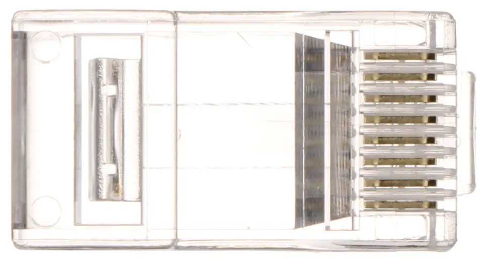Wtyk z przelotem na żyły skrętki, ułatwiający sprawne zaprawienie złączaDo wtyku dedykowany jest specjalny zaciskacz HT-240T, który posiada opcję odcinania nadmiarowych żył skrętki