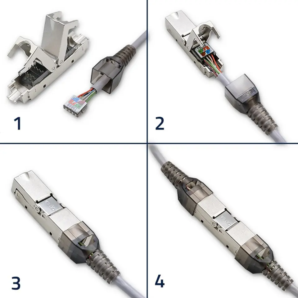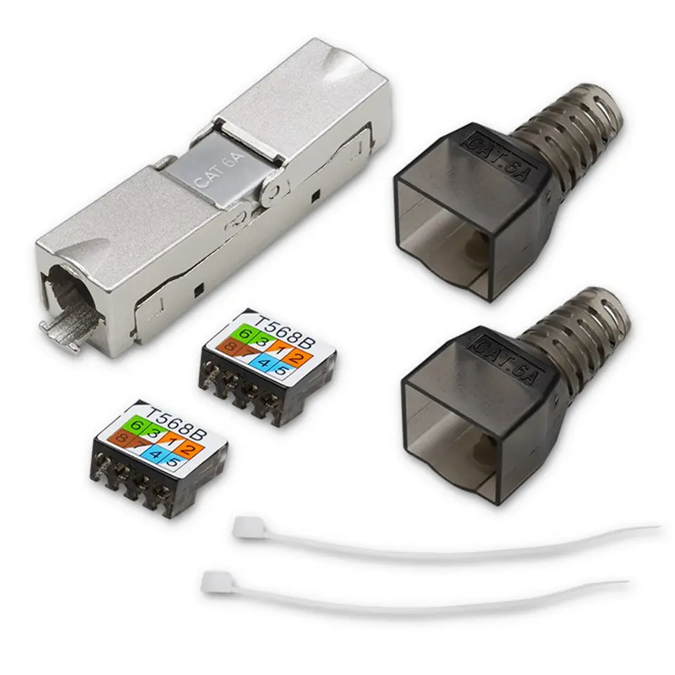 Odkryj nowy wymiar łatwości i niezawodności w instalacjach sieciowychWtyki bez narzędziowe STP Cat6A Jack Pin są wygodnym i łatwym w użyciu rozwiązaniem w sytuacjach, gdzie istnieje potrzeba szybkiej instalacji lub aktualizacji sieci. Ten innowacyjny wtyk umożliwia błyskawiczną instalację kabla kategorii 6A, eliminując konieczność użycia specjalistycznych narzędzi np. zaciskarki. Bez kłopotów z narzędziami, nasz wtyk umożliwia ekspresowe dostosowanie się do standardów T568A lub T568B, dostarczając solidnych połączeń w sieciach o najwyższej jakości. Specjalnie zaprojektowany mechanizm zatrzaskowy pozwala na łatwe wprowadzenie i zaciśnięcie przewodów. To doskonałe rozwiązanie dla profesjonalistów, którzy cenią sobie wydajność, precyzję i trwałość swoich instalacji. Szybka i efektywna instalacja dla każdego - bez specjalistycznych narzędziWyposażony w ekranowanie, wtyk zapewnia skuteczną ochronę przed zakłóceniami elektromagnetycznymi, co sprawia, że jest idealny do zastosowań wymagających najwyższej jakości transmisji danych. Doskonały do zastosowań w biurach, domach, hotelach, a także w środowiskach przemysłowych, gdzie liczy się niezawodność i łatwość instalacji. Także dla osób bez doświadczenia w sieciach komputerowych.