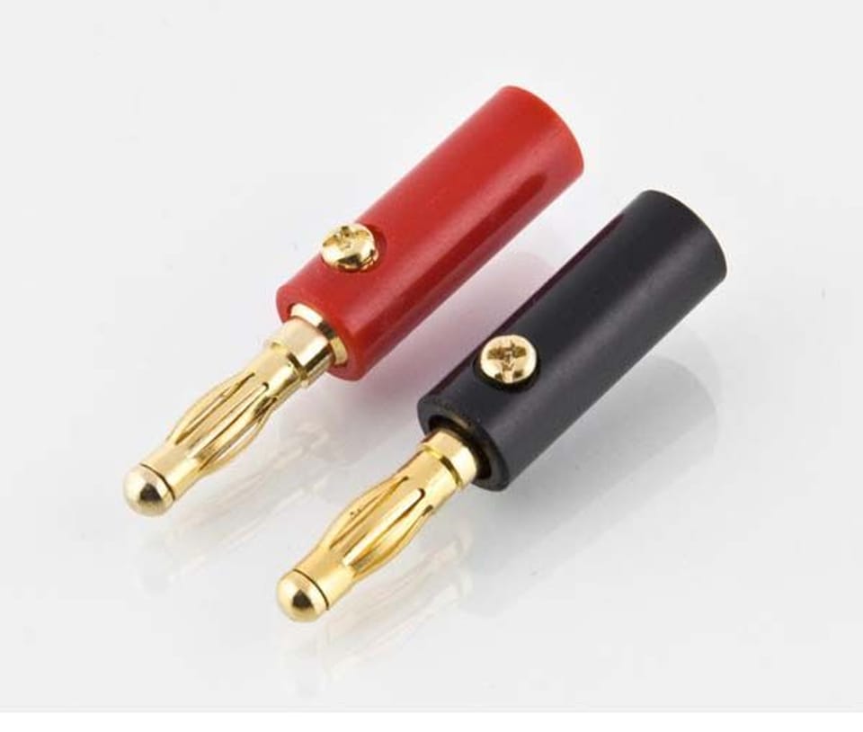 Para pozłacanych lub posrebrzanych wtyków bananowych 4mm, idealna do zastosowania np. przy ładowarkach serii Raytronic, czy Graupner