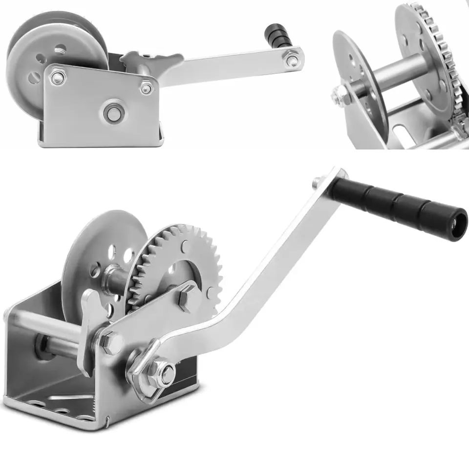 Wyciągarka ręczna marki MSW sprawdzi się do holowania łodzi, przyczep kempingowych oraz innych ładunków w domu, ogrodzie, na przystani czy w warsztacie. Solidna konstrukcja i przełożenie 4,1:1 pozwalają na rozwinięcie siły uciągu 350 kg. Urządzenie obsługiwane jest ręcznie, bez użycia prądu. Przekładnia jest cicha, koła zębate zazębiają się precyzyjnie. Skrzynia biegów wykonana została ze stali stopowej i zabezpieczona powłoką galwaniczną. Mechanizm hamulcowy utrzymuje linkę bezpiecznie w żądanej pozycji. Elementy mechaniczne są zamknięte i zabezpieczone podczas pracy, korbę można wyjąć do przechowywania.
