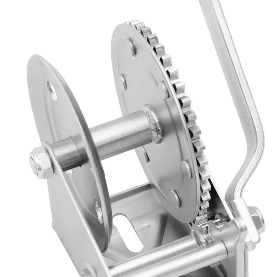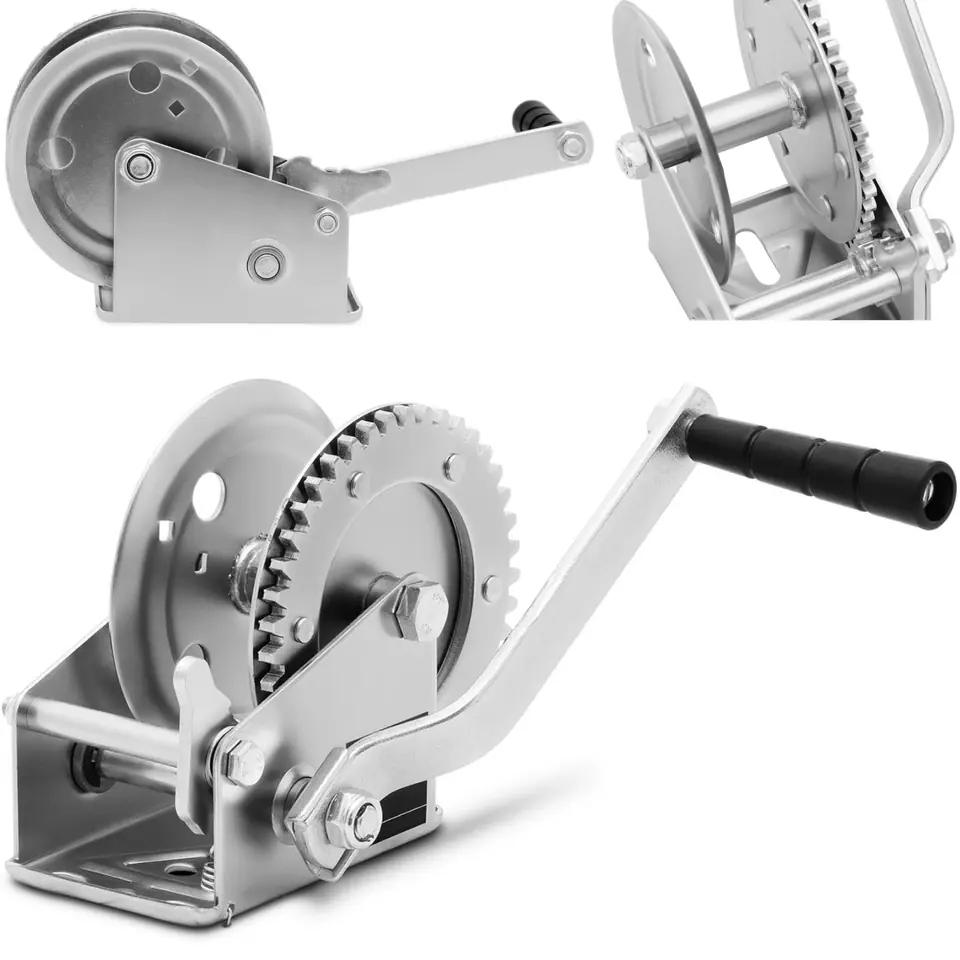 Wyciągarka ręczna marki MSW sprawdzi się do holowania łodzi, przyczep kempingowych oraz innych ładunków w domu, ogrodzie, na przystani czy w warsztacie. Solidna konstrukcja i przełożenie 4,1:1 pozwalają na rozwinięcie siły uciągu 550 kg. Urządzenie obsługiwane jest ręcznie, bez użycia prądu. Przekładnia jest cicha, koła zębate zazębiają się precyzyjnie. Skrzynia biegów wykonana została ze stali stopowej i zabezpieczona powłoką galwaniczną. Mechanizm hamulcowy utrzymuje linkę bezpiecznie w żądanej pozycji. Elementy mechaniczne są zamknięte i zabezpieczone podczas pracy, korbę można wyjąć do przechowywania.
