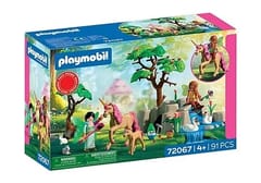 Lśniące kolory, łagodne stworzenia i zaskakujące odkrycia sprawiają, że ta magiczna wyprawa na długo pozostaje w pamięci. Gdy przyjaciele zagłębiają się w naturę, jednorożce pochylają głowy, by powitać małe zwierzątka ukryte wśród drzew, a łabędzie płyną spokojnie obok, prowadząc swoje urocze pisklęta. Dzięki zdejmowanym akcesoriom i czarującym detalom każda chwila zachęca do tworzenia nowych historii. Ten przepięknie zaprojektowany zestaw PLAYMOBIL pozwala dzieciom odkrywać baśniową zabawę na niezliczone sposoby! Dwie urocze wróżki, radosny Joyling PLAYMOBIL, jednorożce, leśne zwierzęta i barwny krajobraz pełen ukrytych skarbów to idealna propozycja dla małych marzycieli.
