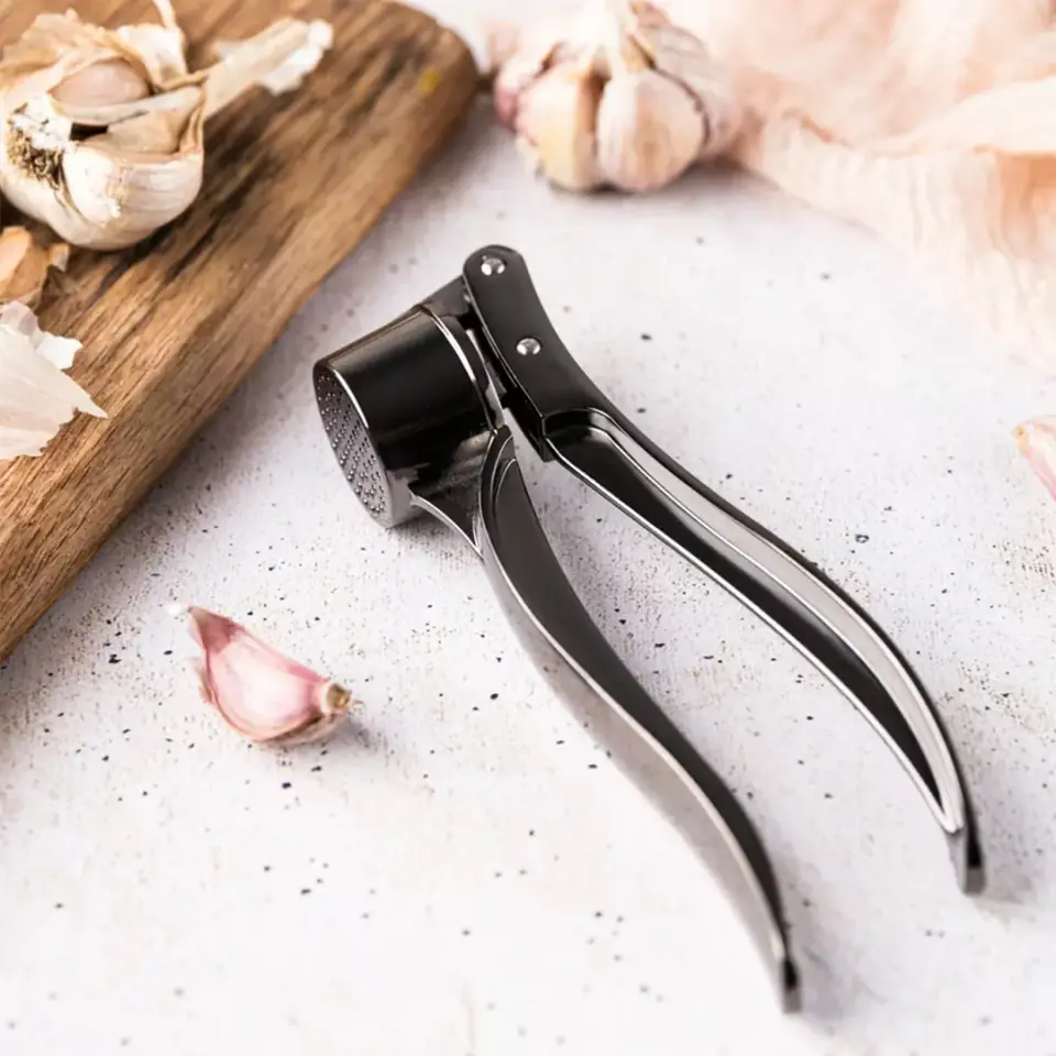 - Ergonomiczny design: Wydłużone uchwyty oferują doskonały chwyt i dźwignię, dzięki czemu wyciskanie czosnku jest proste.