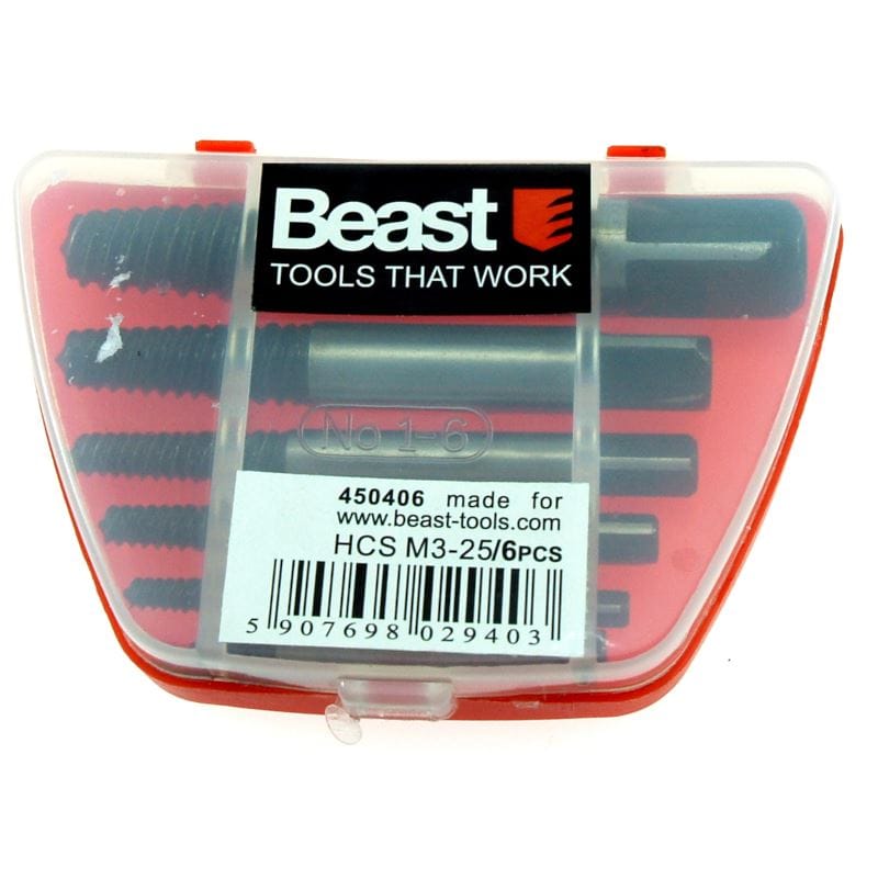 Zestaw zawiera 6 wykrętaków do najczęściej używanych średnic śrub: