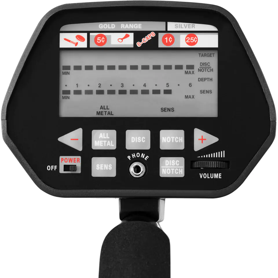 Wykrywacz metali marki Steinberg Systems umożliwia odnalezienie zgubionej obrączki, skarbu w lesie czy kabli w ścianie. Detektor wyposażony został w panel sterowania z wyświetlaczem LCD. Pozwala znaleźć nawet małe przedmioty, takie jak monety, pierścionki, gwoździe do głębokości 18 cm. Dostępne są 3 tryby wyszukiwania: All Metal - wykrywa wszystkie rodzaje metali, ma automatyczną kompensację gruntu i jest bardzo czuły. Disc - (dyskryminacja) wyświetlanie niektórych rodzajów metalu zostaje wyłączone. Notch - częściowa dyskryminacja pozwala zmienić zakres częstotliwości i dostosować ją do konkretnych metali. Sygnał dźwiękowy informuje o wykryciu obiektu. Urządzenie posiada gniazdo słuchawkowe jack 3,5 mm. Głośność jest regulowana. Wykrywacz zasilany jest dwiema bateriami 9 V. Zużycie energii jest bardzo niskie. Teleskopowe ramię o długości 106-122 cm pozwala dostosować urządzenie zarówno do małych jak i dużych użytkowników. Podłokietnik jest wyściełany dla większej wygody. Cewka ma średnicę 20,5 cm, jest wodoodporna, co pozwala na poszukiwania nawet w deszczu, śniegu czy płytkiej wodzie.