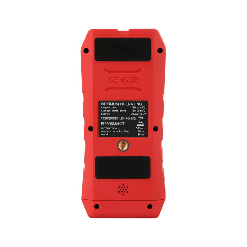 -----------ZAKRESY POMIAROWE-----------Wykrywanie elementów metalowych w ścianach do głębokości 100 mmWykrywanie elementów drewnianych w ścianach do głębokości 20 mm (tryb precyzyjny) / 38 mm (tryb głębokości)Wykrywanie metali w ścianach do głębokości 100 mmWykrywanie metali nieżelaznych w ścianach do głębokości 80 mmWykrywanie przewodów pod napięciem AC 110~220 V do głębokości 50 mmWykrywanie miedzi (>4 mm2) w ścianach do głębokości 40 mm-----------CECHY OGÓLNE-----------Kolorowy wyświetlaczWymiary wyświetlacza: 2,4 calaWymiary: 153 x 68 x 31 mm Waga: 151,4 gTemperatura pracy: 0°C ~ 40°C przy wilgotności do 85% (30% w trybie AC)Temperatura przechowywania: -20°C ~ 60°CZasilanie: bateria litowo-jonowa 300 mAh