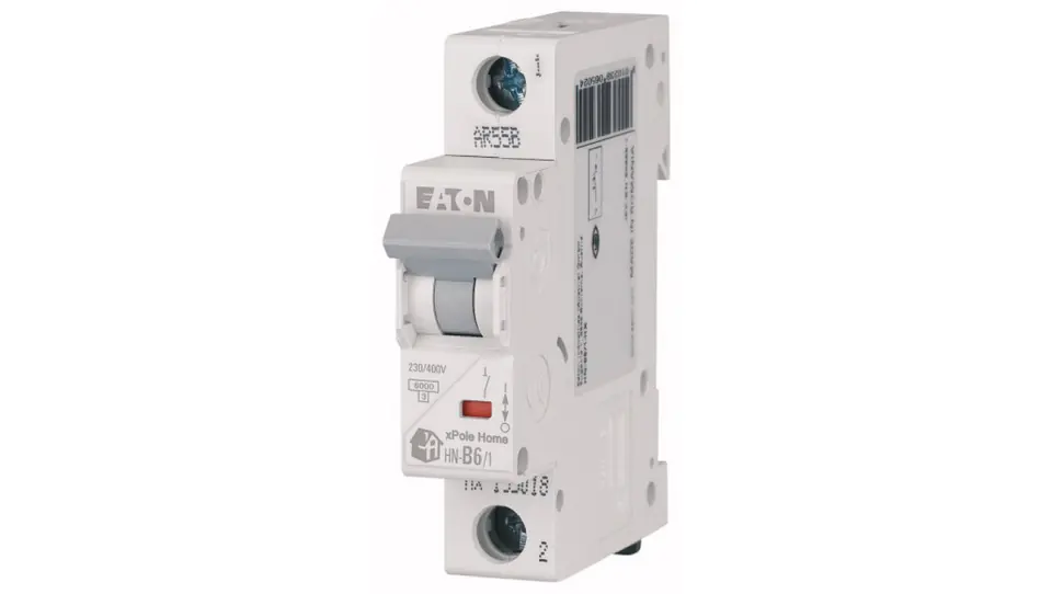 Wyłącznik nadprądowy o charakterystyce typu B i prądzie znamionowym 6AWyłącznik HN-B6/1 jest przewidziany do montażu na szynie DIN TS-35