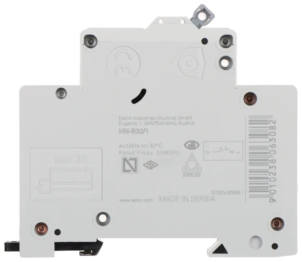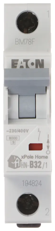 Wyłącznik nadprądowy o charakterystyce typu B i prądzie znamionowym 32AWyłącznik HN-B32/1 jest przewidziany do montażu na szynie DIN TS-35
