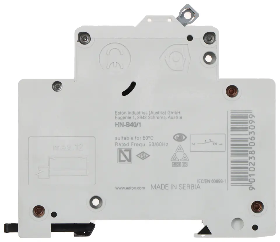 Wyłącznik nadprądowy o charakterystyce typu B i prądzie znamionowym 40AWyłącznik HN-B40/1 jest przewidziany do montażu na szynie DIN TS-35