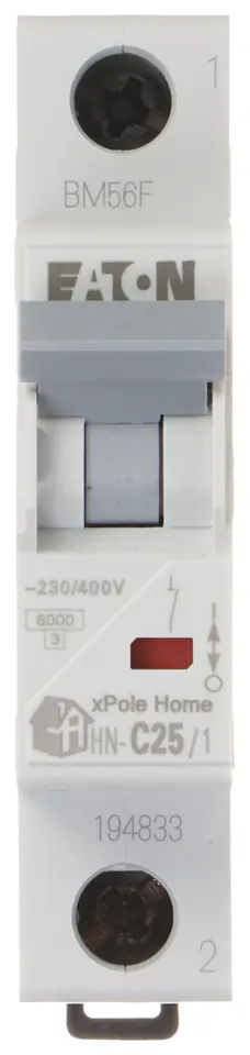 Wyłącznik nadprądowy o charakterystyce typu C i prądzie znamionowym 25AWyłącznik HN-C25/1 jest przewidziany do montażu na szynie DIN TS-35