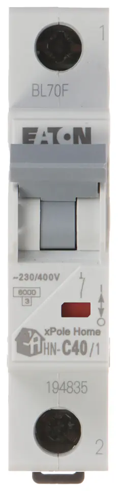Wyłącznik nadprądowy o charakterystyce typu C i prądzie znamionowym 40AWyłącznik HN-C40/1 jest przewidziany do montażu na szynie DIN TS-35