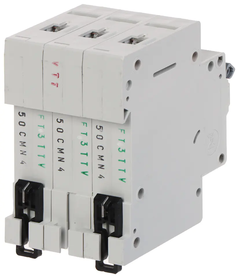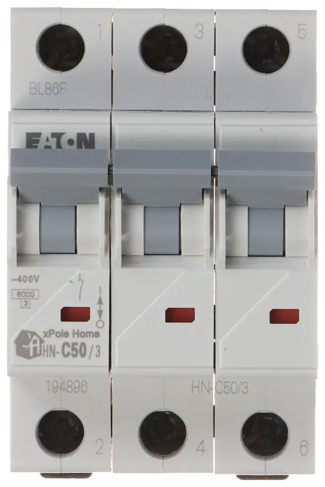 Wyłącznik nadprądowy o charakterystyce typu C i prądzie znamionowym 50AWyłącznik HN-C50/3 jest przewidziany do montażu na szynie DIN TS-35