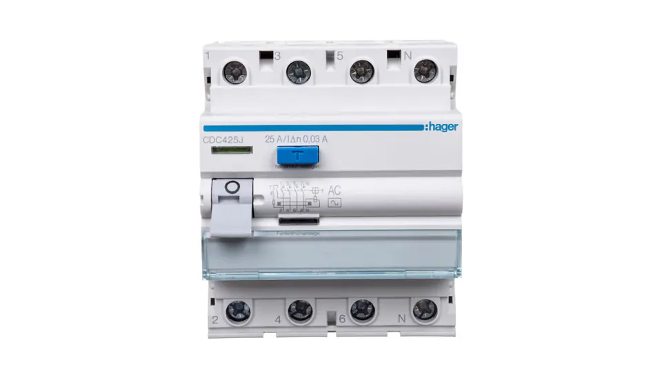 Wyłącznik różnicowoprądowy 3P+N 25A 30mA 6kA AC HAGER CDC425J