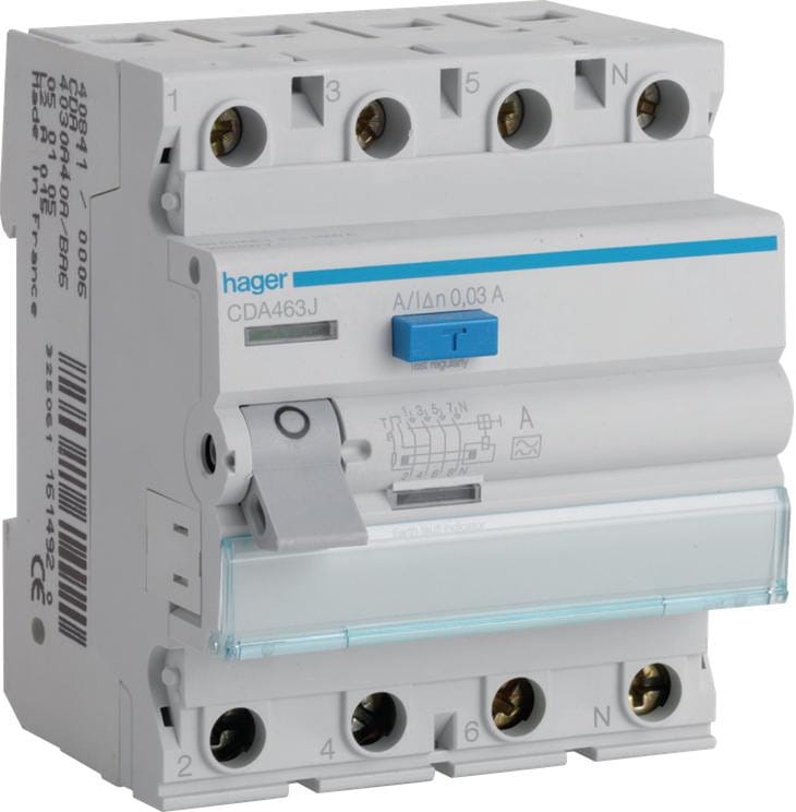 HAGER RCCB Wyłącznik różnicowoprądowy 3P+N 63A 30mA 6kA A CDA463J