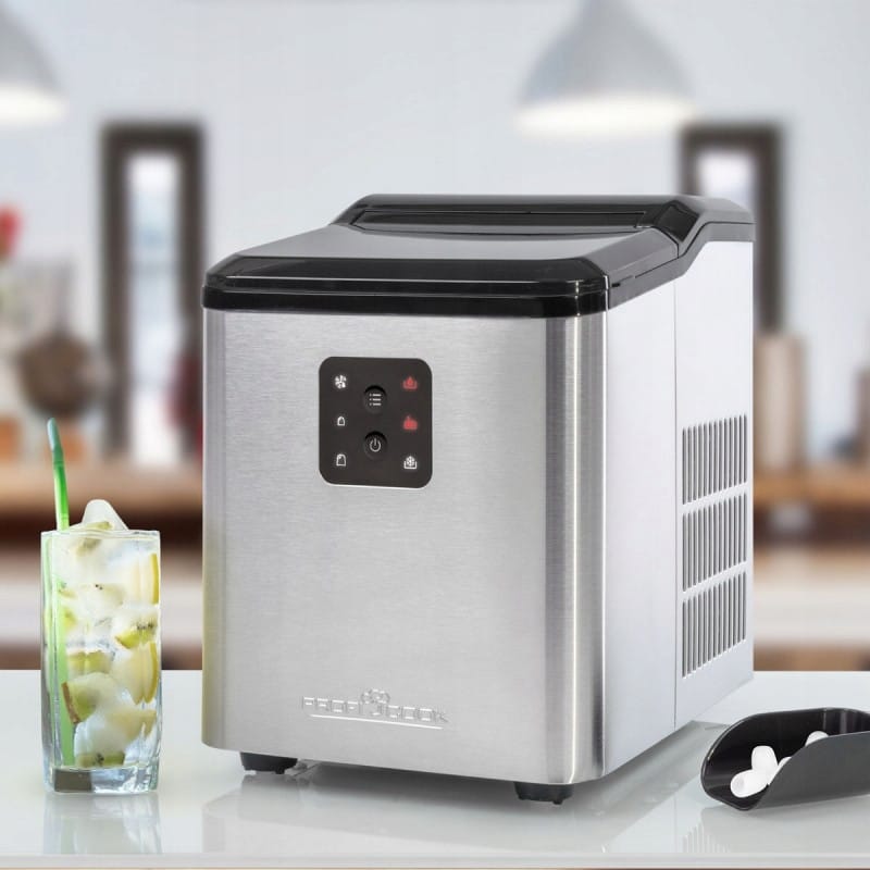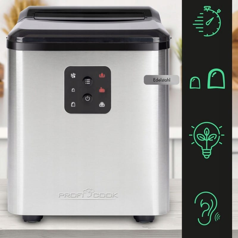 NAJWYŻSZEJ JAKOŚCIKOSTKARKA DO LODURENOMOWANEJ FIRMY PROFICOOKMODEL: PC-EWB 1253Kompaktowa kostkarka do lodu. Idealna do biura, zastosowań domowych i gastronomicznych.Wystarczy tylko wlać wodę i nacisnąć jeden przycisk aby otrzymać zmrożone kostki lodu. Kostkarka posiada zbiornik na wodę o pojemności 1.5 litra.Pojemność zbiornika wody to 1.5 litra - w ciągu doby urządzenie potrafiwytworzyć ok. 8-12 kg lodu.ProfiCook PC-EWB 1253 to kompaktowa kostkarka do lodu, która pomaga w przygotowaniu chłodnych napojów na przyjęciu i wszędzie tam, gdzie chcemy uzyskać odpowiednio schłodzone napoje. Obsługa urządzenia jest niezwykle prosta - sprowadza się do wlania wody, wciśnięcia przycisku i odczekania około 10 minut - tylko tyle wystarczy, aby móc otrzymać gotowe kostki lodu i dodać je do ulubionego napoju.Co ważne, kostkarka do lodu nie wymaga skomplikowanej instalacji i obsługi. O wszelkich czynnościach wymagających ingerencji poinformuje kontrolka LED i sygnał dźwiękowy. Kostkarka zajmuje niewiele miejsca, dzięki czemu śmiało można z niej korzystać w domu, biurze, czy małej gastronomii lub kamperzeNajważniejsze cechy kostkarki do lodu ProfiCook PC-EWB 1253:Kompaktowa kostkarka do lodu2 rozmiary kostek do wyboruIdealna do biura, zastosowań domowych oraz gastronomicznychDo wytworzenia lodu wystarczy wlanie wody i naciśnięcie jednego przyciskuNie wymaga skomplikowanej instalacji i obsługiZbiornik na wodę o pojemności 1.5 litra8-12 kg w 24hWskaźniki LED i sygnał dźwiękowy informujące o działaniu urządzenia, konieczności dolania wody oraz zapełnionym pojemniku na kostkiOszczędność energii dzięki automatycznemu wyłącznikowi po zakończeniu pracyMożliwość kontroli pracy dzięki okienku w pokrywieCicha pracaOznaczenia CE - spełnia wszystkie restrykcyjne normy UEZasilanie sieciowe: 220-240 V~, 50 Hz, 105 WDlaczego warto kupić maszynę do lodów ProfiCook PC-EWB WydajnośćW ciągu 24h przygotuje nawet 12kg kostek lodu do napojów i drinków, dlatego jest idealna na imprezy lub podczas upałówProsta obsługaObsługa urządzenia sprowadza się do wlania wody, wciśnięcia przycisku i odczekania dziesięciu minut na gotowe kostkiIdealna na prezentUrządzenie posiada eleganckie opakowanie, dzięki czemu idealnie sprawdzi się, jako prezent!Wymiary kostkarki:Wymiary (ok. szer. x wys. x gł.) i wagaUrządzenie: 228 x 294 x 305 mm; 7.0 kgOpakowanie: 285 x 326 x 354 mm; 7.9 kg Produkt został odznaczony certyfikatem FOCUS - TEST DEUTSCHLANDS BESTECertyfikat TEST DEUTSCHLANDS BESTE został przyznany na podstawie badań przeprowadzonych przez „Germanys best household electronics”. W ramach testu porównane zostały produkty z ponad 20 000 marek z 274 segmentów rynkowych.Celem wyróżnienia „Focus” jest wskazywanie produktów cieszących się największym uznaniem konsumentów. Certyfikat przyznany jest na podstawie badań niemieckiego rynku i potwierdza wysoką jakość produktów a także świadczy o dużym zaufaniu konsumentów i renomie marki.slimtex