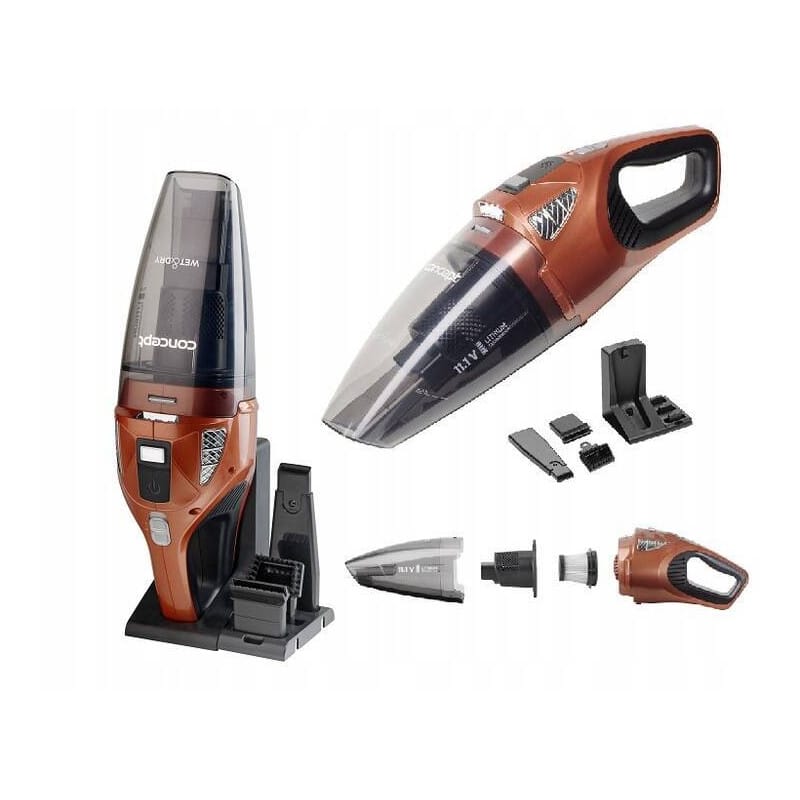 NAJWYŻEJ JAKOŚCIODKURZACZ RĘCZNYRENOMOWANEJ FIRMY CONCEPTMODEL: VP-4360 / VP4360Odkurzacz ręczny Concept VP4360 umożliwia szybkie i wydajne sprzątanie.Jest zawsze pod ręką, możesz odkurzać zarówno na sucho, jak i na mokro przez 45 minut.Odkurzacz ręczny VP4360 umożliwia odkurzanie suchych i mokrych zabrudzeń.Rozsypana sól lub rozlane mleko - nie ma problemu, odkurzacz poradzi sobie ze wszystkim w jednej chwili. 3 praktyczne diody LED oświetlą słabo widoczne miejsca.VP4360 jest wyposażony w wysokiej jakości akumulator litowo-jonowy 11,1 V o pojemności 2000 mAh, co pozwala na odkurzanie do 45 minut na jednym ładowaniu. Bateria ta charakteryzuje się wyższą wydajnością i dłuższą żywotnością.Jednocześnie nie odczuwa tak zwanego efektu pamięci, gdy nieprawidłowe ładowanie może doprowadzić do nagłego i trwałego spadku pojemności akumulatora w ciągu kilkudziesięciu cykli ładowań.Czyszczenie VP4360 jest bardzo szybkie i łatwe. Naciśnij przycisk, aby wypiąć pojemnik zbiorczy, w którym gromadzi się kurz i inne zanieczyszczenia.Wystarczy opróżnić pojemnik i zamontować go ponownie. Twój pomocnik znowu jest gotowy do akcji.Obsługa jedną rękąOdkurzacz ręczny Concept VP4360 jest lekki, doskonale leży w dłoni i jest bardzo wygodny w użyciu.Jedną ręką możesz odkurzać wszystkie małe zanieczyszczenia bez konieczności sięgania po klasyczny i ciężki odkurzacz. Ponadto żaden przewód nie będzie Ci przeszkadzał podczas pracy.Ręczny odkurzacz do domu i autaOdkurzacz ręczny VP4360 jest wyposażony w długą szczelinową ssawkę do czyszczenia trudno dostępnych miejsc, ssawkę z włosiem i gumową ściągaczkę.Praktyczny stojak ułatwi przechowywanie odkurzacza, gdy nie jest potrzebny lub gdy konieczne jest naładowanie.Techniczne parametry:Wet & DryAkumulator 11,1 V, 2000 mAhTyp baterii: Li-IonSiła ssania: 3,4 kPaCzas pracy: aż 45 minPojemność zbiornika na kurz: 0,45 lPojemność zbiornika na płyn: 150 ml2 stopnie pracyHEPA filtr3x LED diodaCzas ładowania: 5 hAkcesoria:Długa ssawka szczelinowaSsawka z włosiemŚciągaczkaStojak z funkcją ładowaniaŁadowarkaslimtex
