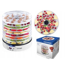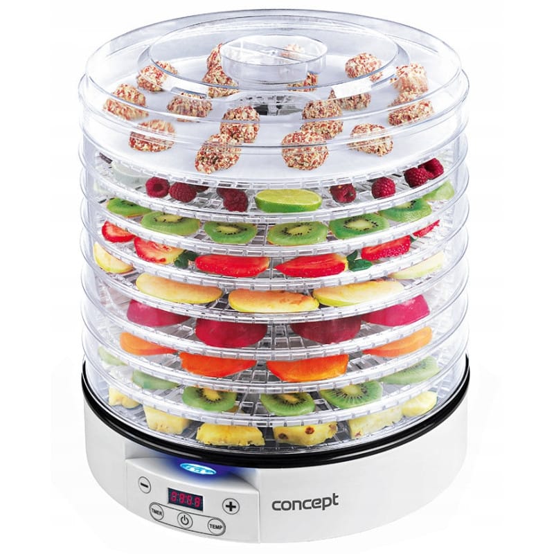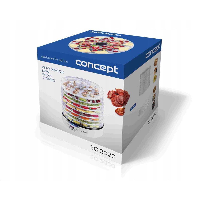 NAJWYŻEJ JAKOŚCISUSZARKA SPOŻYWCZADO OWOCÓW, WARZYW,GRZYBÓW I ZIÓŁRAW FOODRENOMOWANEJ FIRMY CONCEPTMODEL: SO2020 / SO-2020Suszarka spożywcza firmy Concept SO2020 to prawdopodobnie jedna z największych i najmocniejszych suszarek /9 sit O33 cm i 500 Watt/ w tej klasie na rynku polskim do grzybów, owoców, warzyw, ziół, mięsa, ryb i innych produktów.Concept jest wiodącym producentem i dostawcą elektrycznego sprzętu gospodarstwa domowego w Czechach, na Słowacji oraz w Polsce. Naszym priorytetem są ludzie. W czasach ciągłego pospiechu chcemy zmieniać i ułatwiać im życie. Często prace domowe kojarzą się z najmniej przyjemną częścią dnia. Naszym celem jest, aby te codzienne czynności przynosiły wszystkim radość i zdrowotne korzyści. Chcemy zaspokoić potrzeby miłośników zdrowego stylu życia, ale także smakoszy i koneserów, którzy za pomocą naszych produktów mogą cieszyć się tradycyjnymi przysmakami w nowoczesnej odsłonie.Marka Concept nie skupia się wyłącznie na produktach na produktach od strony technicznej, które maja spełniać swoje zadanie, ale przywiązuje ogromną uwagę do sztuki projektowania. Firma stara się dopasować indywidualne urządzenia do zestawów projektowych, aby idealnie pasowały do każdego gospodarstwa domowego, tworząc w nim jednolita całość.Naszym celem są produkty wysokiej jakości, funkcjonalne o nowoczesnym i atrakcyjnym wzornictwieRAW FOODCzy jesteś na diecie lub lubisz eksperymentować z nowymi rzeczami Dieta RAW FOOD opiera się głównie na spożyciu surowej żywności, przetwarzanych w tempareturze maksymalnie do 42 °C. Idealnym partnerem w tego typu sposobie żywienie jest suszarka do owoców z regulacją temperatury od 35 °C.RAW wkładySuszarka w zestawie posiada specjalne RAW wkłady, które pomogą Ci przygotować dania typu RAW. Spróbuj pysznych i zdrowych przekąsek z suszonych bananów lub kokosowo-jagodowych herbatników.Zdrowe przekąski cały rokCieszą Cię plony owoców i warzyw z własnej działki Suszarki SO2020 możesz używać do suszenia wszystkich zbiorów. Dzięki mocy 500 W żywność wysuszysz szybciej niż myślisz.DoskonałośćSO2020 jest wyposażona w praktyczny zegar i wyświetlacz LED. Wygodnie ustawisz temperaturę w zakresie od 35 do 70 °C, ale także oczekiwany czas suszenia, np. grzybów. Już więcej nie przesuszysz produktów. Po upływie nastawionego czasu zabrzmi sygnał dźwiękowy, a urządzenie wyłączy się.Równomierne suszenieInną zaletą jest zintegrowany wentylator, który pomaga w równomiernym suszeniu na wszystkich poziomach suszarki. Rezultat będzie po prostu idealny.Powody, dla których warto posiadać suszarkę do owocówConcept SO2020:ZDROWE PRZECHOWYWANIE ŻYWNOŚCI Przy pomocy suszarki do owoców Concept SO2020 możecie przygotować na zimę duży zapas suszonych warzyw, owoców i grzybów które idealnie nadadzą się do przygotowania smacznych zup czy zdrowych kompotów z jabłek, śliwek czy gruszek. Z kolei z suszonych pomarańczy i mandarynek można przygotować piękne dekoracje nie tylko na Boże Narodzenie. Ponadto możesz poczuć smak domowej ziołowej herbaty z własnoręcznie nazbieranej i wysuszonej mięty, lipy czy bzu …SUSZENIE DUŻEJ ILOŚĆ PRODUKTÓW W TYM SAMYM CZASIEŁATWA OBSŁUGA Wystarczy rozłożyć pokrojone produkty (owoce, grzyby, warzywa, zioła, kwiaty, mięso lub ryby) na sitach i po wybraniu żądanej temperatury rozpocząć suszenie.PRAKTYCZNOŚĆ Sita do suszenia można myć w zmywarce.Co możemy suszyćOwoce: morele, brzoskwinie, jabłka, banany, winogrona, gruszki, kiwi, jagody, czereśnie, borówki, truskawki, wiórki kokosowe, daktyle, figi, śliwki, żurawinę, rabarbar itp.Warzywa: marchew, ogórki, buraki, pomidory, cebulę, paprykę, bakłażany, ziemniaki, seler, cukinię, rzepę, kukurydzę, groch i fasolę itp.Zioła i przyprawy: natkę pietruszki, bazylię, oregano, tymianek, kolendrę, miętę itp.Mięso: drób, wołowinę, wieprzowinę a nawet dziczyznę.Grzyby: pieczarki, borowiki, maślaki, podgrzybki, rydze, gąski, opieńki, trufle itp.Nasiona i orzechy orazNabiał: jogurty i sery.Przy pomocy suszarki do owoców Concept SO2020 możecie przygotować na zimę duży zapas suszonych warzyw, owoców i grzybów które idealnie nadadzą się do przygotowania smacznych zup czy zdrowych kompotów z jabłek, śliwek czy gruszek. Z kolei z suszonych pomarańczy i mandarynek można przygotować piękne dekoracje nie tylko na Boże Narodzenie.Ponadto możesz poczuć smak domowej ziołowej herbaty z własnoręcznie nazbieranej i wysuszonej mięty, lipy czy bzu..Poręczna konserwacjaKonserwacja suszarki jest szybka, wygodna i prosta.DANE TECHNICZNE:Płynna regulacja temperatury suszenia: 35 – 70 °C2 x RAW wkładyWentylator dla równomiernego suszeniaCyfrowy TIMER 1 - 48 hLED wyświetlacz9 przeźroczystych sitŚrednica sita: 33 cmZabezpieczenie przed przegrzaniemMoc: 500 WNapięcie: 220 – 240 VSLIMTEX