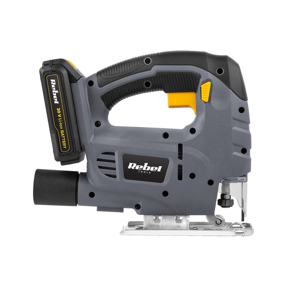 Jak przystało na mocne narzędzie warsztatowe, wyrzynarka Rebel Tools posiada trwałą metalową stopę co w połączeniu z mocną obudową i gumowaną rękojeścią, gwarantuje długą i ergonomiczną pracę przez wiele lat.