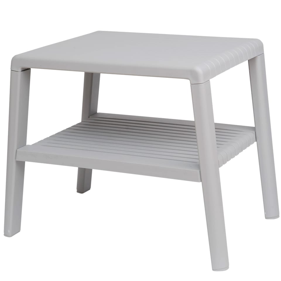 - - Wytrzymały stolik basenowy kawowy do ogrodu na taras z półką - SZARY