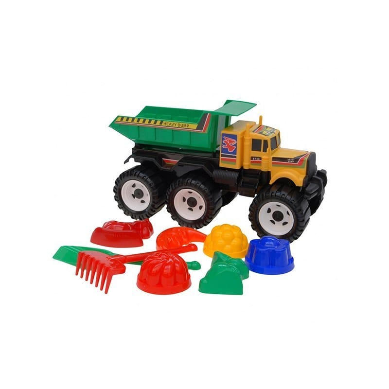 LESZ 115 Wywrotka mała z dodatkami. Zawartośc opakowania: - łopatka - grabki - 6x foremka Wymiary długość: 40cm szerokość: 16 cm wysokość: 21,5 cm waga: 0.70 kg