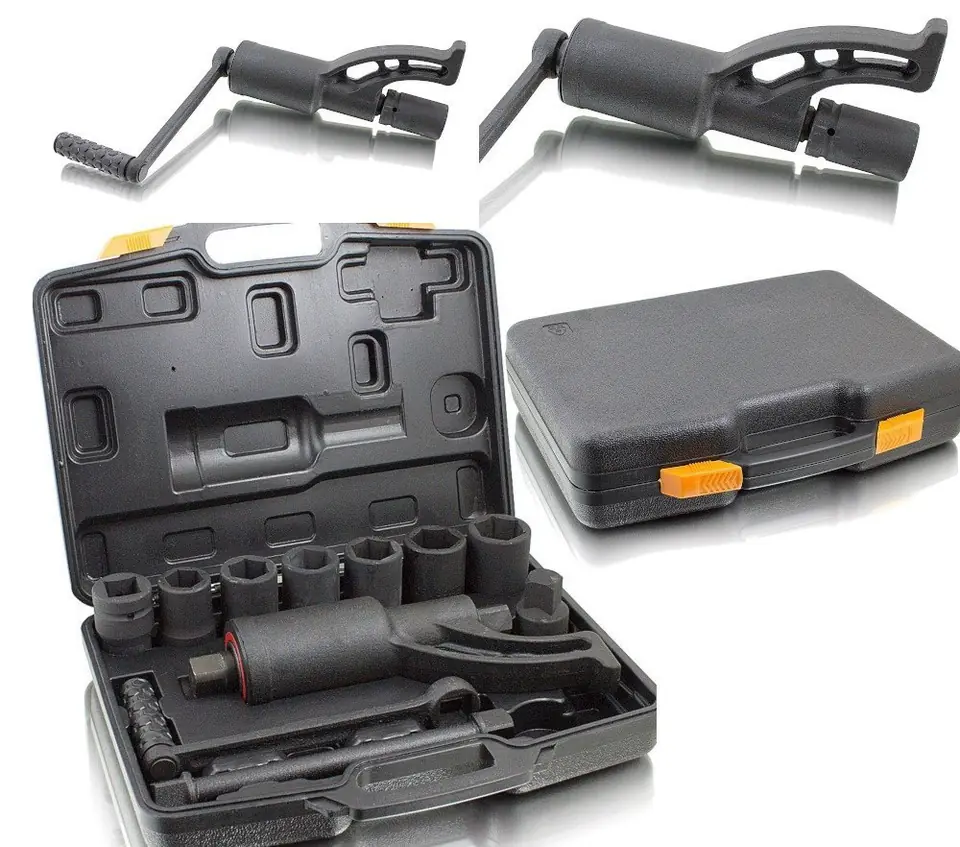 Stosunek przełożenia siły wynosi 1:68, a maksymalny moment dokręcenia 3200Nm. Dzięki temu łatwo i precyzyjnie dokręcisz i odkręcisz każdą śrubę. Kolejną zaletą klucza jest to, że do pracy nie potrzebuje energii elektrycznej. Z klucza można korzystać praktycznie w każdych warunkach. Idealnie sprawdzi się przy wymianie kół, pracach w warsztacie oraz naprawie różnych urządzeń i maszyn.Jak użyć klucza? To proste! Zamontuj korbę oraz nasadkę i przyłóż klucz do koła. Zablokuj stopkę oporową o najbliższą sąsiadującą śrubę - postępuj zgodnie z ruchem wskazówek zegara. Następnie przystąp do odkręcania za pomocą korby.