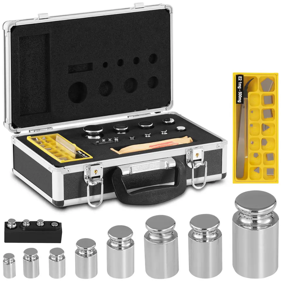 Kod producenta: 10200126Komplet wzorców masy marki TEM służy do kalibracji wag elektronicznych i innych przyrządów pomiarowych oraz do sprawdzania masy za pomocą np. wag szalkowych. Zestaw składa się z 24 odważników o wadze w zakresie od 1 do 500 g. Certyfikat kalibracji jest świadectwem wysokiej jakości wzorców masy marki TEM. Charakteryzują się też standardem OIML R 1111. Z kolei klasa E2 oznacza, że odważniki są jednolite i odporne na działanie środków chemicznych, które nie mają wpływu na powierzchnię oraz kalibrację odważników. Wykonanie ze stali nierdzewnej gwarantuje wieloletnią trwałość zestawu. Wszystkie jego elementy przechowasz w aluminiowym pudełku dołączonym do zestawu.Cechy produktu: