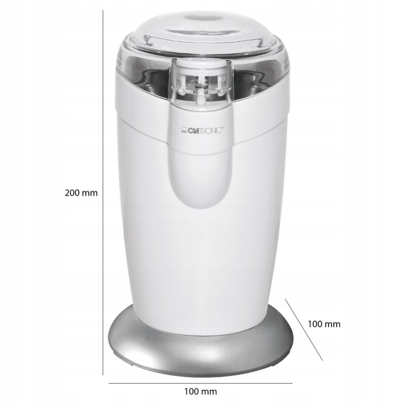 NAJWYŻSZEJ JAKOŚCIMŁYNEK DO KAWYRENOMOWANEJ FIRMY CLATRONICMODEL: KSW 3306Za pomocą młynka szybko zmieli się odpowiednią ilość ziaren kawy. Dobra kawa tylko w kawiarni Niekoniecznie.Do jej przygotowania w domowym zaciszu na pewno niezbędny jest dobry młynek, który sprawi, że będzie świeża i aromatyczna.Elektryczny młynek do kawy z mechanizmem udarowymNóż udarowy ze stali szlachetnejPojemnik do mielenia ze stali szlachetnej, ochrona przed wydobywaniem zapachu, higieniczna pracaPrzezroczysta pokrywkaElektryczny młynek do kawy marki Clatronic to urządzenie do mielenia całych ziaren kawy. Praktyczny dodatek do ekspresów kolbowych i przelewowych bez wbudowanych młynków.Jednorazowo w młynku można zmielić max. 40 g kawy (około 20 filiżanek kawy). Młynek wyposażony jest w mechanizm udarowy oraz ostrza wykonane z wysokiej jakości stali nierdzewnej.Dzięki przeźroczystej pokrywie można obserwować stopnień zmielenia ziaren w trakcie pracy młynka a świeżo zmielona kawa smakuje wyśmienicie i zachowuje swój naturalny przepiękny aromat.Elegancki i nowoczesny wygląd młynka w kolorze białym wzbogaci wystrój każdej kuchni.Elektryczny młynek do kawy z mechanizmem udarowymNóż udarowy ze stali szlachetnejPojemnik do mielenia ze stali szlachetnej, ochrona przed wydobywaniem zapachu, higieniczna pracaPrzezroczysta pokrywkaPojemność 40 g — 20 filiżanek kawySilnik o dużej mocy 120 WWyłącznik bezpieczeństwa – uruchomienie możliwe tylko przy założonej pokrywceWyłącznik bezpieczeństwa również przy pracy impulsowejStopień rozdrobnienia wybierany czasem pracyUchwyt na kabelZasilanie: 230 V, 50 Hz, 120 WWymiary (S x W x G): 100 x 200 x 100 mmWaga: 0,68 kg Produkt został odznaczony certyfikatem FOCUS - TEST DEUTSCHLANDS BESTECertyfikat TEST DEUTSCHLANDS BESTE został przyznany na podstawie badań przeprowadzonych przez „Germanys best household electronics”. W ramach testu porównane zostały produkty z ponad 20 000 marek z 274 segmentów rynkowych.Celem wyróżnienia „Focus” jest wskazywanie produktów cieszących się największym uznaniem konsumentów. Certyfikat przyznany jest na podstawie badań niemieckiego rynku i potwierdza wysoką jakość produktów a także świadczy o dużym zaufaniu konsumentów i renomie marki.slimtex