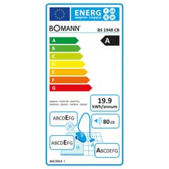 NAJWYŻSZEJ JAKOŚCIODKURZACZ PIONOWY2w1 RĘCZNY I PODŁOGOWYRENOMOWANEJ FIRMY BOMANNMODEL: BS 1948 NIEBIESKIOdkryj bezworkowy odkurzacz podłogowy 2 w 1! Dzięki systemowi Eco-Cyclon Twin-Spin i energooszczędnej mocy 600 watów bez wysiłku wciągnie każdy brud i kurz.Dzięki przełączanej szczotce podłogowej z łatwością dotrzesz do każdego zakamarka. Odkurzacz można używać również jako odkurzacz ręczny, dzięki czemu czyszczenie mebli, tapicerki i innych przedmiotów staje się proste.Odkurzacz firmy Bomann BS 1948 CB to skuteczny pomocnik czystości z wydajnym silnikiem 600 W.W jednym urządzeniu o wysokiej klasie skuteczności - mieszczą się dwa: odkurzacz pionowy, podłogowy i ręczny, który doskonale radzi sobie z małymi i delikatnymi powierzchniami.Zamiast worka, odkurzacz ma praktyczny pojemnik, który po czyszczeniu wystarczy opróżnić wysypując śmieci do kosza.Doskonałym ułatwieniem sprzątania jest niewielka waga, dzięki której łatwo operować urządzeniem, trzymanym w jednej dłoni oraz długi na 6,5 m kabel - już nie musisz przerywać pracy, aby go przełączać przechodząc do kolejnych pomieszczeń.Dwuczęściowa aluminiowa rura długości 35 lub 75 cm pozwoli dotrzeć do każdego miejsca zachowując wygodną pozycję, nieobciążającą kręgosłupa.Sprzątanie 2 w 1 - odłączany odkurzacz ręcznyOdkurzanie może być jeszcze dokładniejsze i wygodniejsze niż kiedykolwiek. Ten model urządzenia wyposażono w odłączany odkurzacz ręczny. Z łatwością odepniesz go w dowolnej chwili, by odkurzyć meble, blat lub podłogę. Odłączany odkurzacz ręczny przyda się również podczas sprzątania wnętrza samochodu, a także w wielu innych sytuacjach.Odkurzanie, które nie zakłóca innych obowiązkówOdkurzaj nie przejmując się nadmiernym hałasem. Ten model odkurzacza pozwala na dość dyskretne sprzątanie, dzięki czemu jest jeszcze bardziej wygodny w użytkowaniu. Hałas na poziomie do 80 decybeli nie będzie szczególnie uciążliwy dla użytkownika urządzenia, jak również dla otoczenia. Spora część pionowych odkurzaczy pracuje emitując hałas właśnie na tym poziomie.Duży pojemnik na kurzNie musisz opróżniać pojemnika na kurz w trakcie sprzątania ani nawet po każdym odkurzeniu niewielkiej przestrzeni. W tym modelu urządzenia przewidziano miejsce na zgromadzenie nawet 0.7 litra kurzu i zabrudzeń. Tak duża przestrzeń na kurz umożliwia swobodne sprzątanie dużego domu albo kilkukrotne odkurzanie mieszkania zanim konieczne będzie pozbycie się zebranych zanieczyszczeń.Przechowując odkurzacz na uchwycie przymocowanym do ściany, oszczędzisz miejsce i łatwo utrzymasz porządek. Dołączone do odkurzacza szczotki możesz przechowywać zawsze pod ręką - umieszczając je na odkurzaczu, wykorzystując zaprojektowane do tego celu uchwyty.Odkurzacz Bomann BS 1948 CB to idealne rozwiązanie dla osób, które nie mają zbyt wiele miejsca na przechowywanie odkurzacza o dużych rozmiarach. Także dla tych, którzy nie lubią zbyt wielkiej ilości sprzętów domu oraz "brudnej roboty" przy wymienianiu zapełnionych worków, której tu nie ma.Najważniejsze cechy odkurzacza Bomann BS 1948 CB2 w 1 - odkurzacz pionowy i ręcznyEko-cyklonIdealny do odkurzania: mebli, tapicerki, ram, zasłon, książek, sprzętu komputerowego, samochodów i wielu więcejSystem wielu filtrówFiltr HEPA2-częściowa rura aluminiowa (35-75 cm)Duży zasięg działania (kabel 6,5 m)Dwufunkcyjna szczotka podłogowaŁatwy do czyszczeniaNiewielka wagaZawiera uchwyt ścienny (oszczędność miejsca)Akcesoria: 2-częściowe, aluminiowa rura ssąca, uchwyt ścienny, ssawka ze szczotką, ssawka szczelinowa, szczotka podłogowaMoc: 600 WKlasa efektywności energetycznej: ARoczne zużycie energii: 19,9 kWh/rokKlasa skuteczności odkurzania dywanu: EKlasa skuteczności odkurzania podłogi twardej: AKlasa reemisji kurzu: EPoziom głośności dB(A): 80Zasilanie sieciowe: 230V,50HzWymiary: 230x1300x130mm (SxWxG)Waga: ok. 2,30 kg230 V, 50 Hz,Filtr cyklonowyUrządzenia wyposażone w filtr cyklonowy to szczególna odmiana odkurzaczy bezworkowych. Posiadają one wewnątrz specjalny system, który wprowadza powietrze zassane do ich środka w ruch wirowy o dużej prędkości. W ten sposób rozdzielają zabrudzenia i wyłapują je do zbiornika. Jest to zaawansowana metoda filtracji.Odkurzacz sieciowyOdkurzacz tego typu wystarczy podłączyć do gniazda elektrycznego, aby był gotowy do sprzątania. Nie trzeba martwić się o naładowanie akumulatora, co jest niezbędne w przypadku urządzeń bezprzewodowych. To klasyczne rozwiązanie, które sprawdzi się, jeśli w miejscu, które będziesz sprzątał jest dostęp do prądu.Doskonały do użytku domowegoDzięki zastosowaniu w tym modelu silnika o mocy 600 W odkurzacz ten idealnie sprawdzi się przy domowych porządkach, zapewniając optymalną moc ssania. Dzięki temu odkurzanie będzie łatwe i szybkie. Dodatkową zaletą silnika o tej mocy jest stosunkowo niewielki pobór energii co pozwoli zaoszczędzić na rachunkach za energię elektryczną.Odłączany odkurzacz ręcznyUrządzenie to ma możliwość odłączenia małego odkurzacza ręcznego. To jakby dwa urządzenia w jednym, co zapewnia uniwersalność i wszechstronność. Odkurzysz nim podłogę i dywany, a po odłączeniu mniejszego odkurzacza szybko i łatwo wyczyścisz meble i blaty. Doskonale sprawdzi się także przy sprzątaniu wnętrza samochodu. Produkt został odznaczony certyfikatem FOCUS - TEST DEUTSCHLANDS BESTECertyfikat TEST DEUTSCHLANDS BESTE został przyznany na podstawie badań przeprowadzonych przez „Germanys best household electronics”. W ramach testu porównane zostały produkty z ponad 20 000 marek z 274 segmentów rynkowych.Celem wyróżnienia „Focus” jest wskazywanie produktów cieszących się największym uznaniem konsumentów. Certyfikat przyznany jest na podstawie badań niemieckiego rynku i potwierdza wysoką jakość produktów 