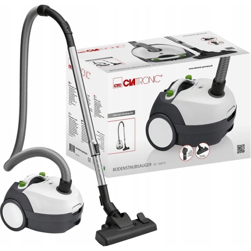 NAJWYŻSZEJ JAKOŚCIODKURZACZ WORKOWYRENOMOWANEJ FIRMY CLATRONICMODEL: BS 1300Clatronic BS 1300 to niewielki odkurzacz workowy o mocy ssania 700 W. Bez względu na to gdzie się znajdziesz, możesz zaprowadzić porządek w swoim otoczeniu.Bez wysiłku odkurzysz z podłogi okruchy, piasek i innego rodzaju brud. Kombinowana szczota z przełącznikiem do gładkich powierzchni oraz do wykładzin i dywanów, umożliwia skuteczne zebranie włosów, sierści i kłaczków.Zebrany brud gromadzi się w wymiennych workach, które można dokupić w ogólnie dostępnych sklepach AGD. 5-warstwowy filtr zapewnia czystość wychodzącego z urządzenia powietrza.Wysokiej jakości rura teleskopową ze stali nierdzewnej i przełączana 2-funkcyjna szczotka oraz dysza szczelinowa składają się na skuteczny zestaw do utrzymania czystych podłóg. Najważniejsze cechy odkurzacza podłogowego Clatronic BS 1300:kolor: białyEnenergooszczędny odkurzacz podłogowy o mocy 700W5-warstwowy system mikrofiltrówTrwała rura teleskopowa ze stali nierdzewnejPrzełączana szczotka podłogowaWskaźnik zapełnienia worka na kurzPraktyczny uchwyt do przenoszeniaAutomatyczne zwijanie kablaZajmuje niewiele miejsca podczas przechowywaniaDołączone akcesoria: uniwersalna 2-funkcyjna szczotka / ssawka szczelinowaZasilanie: 220-240 V~, 50-60 Hz, 700 W Produkt został odznaczony certyfikatem FOCUS - TEST DEUTSCHLANDS BESTECertyfikat TEST DEUTSCHLANDS BESTE został przyznany na podstawie badań przeprowadzonych przez „Germanys best household electronics”. W ramach testu porównane zostały produkty z ponad 20 000 marek z 274 segmentów rynkowych.Celem wyróżnienia „Focus” jest wskazywanie produktów cieszących się największym uznaniem konsumentów. Certyfikat przyznany jest na podstawie badań niemieckiego rynku i potwierdza wysoką jakość produktów a także świadczy o dużym zaufaniu konsumentów i renomie marki.Wymiary odkurzacza:Wymiary (ok. szer. x wys. x gł.) i wagaUrządzenie: 256 x 205 x 310 mm; 3.4 kgOpakowanie: 440 x 290 x 285 mm; 4.1 kgSLIMTEX