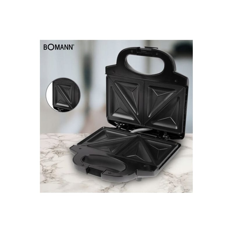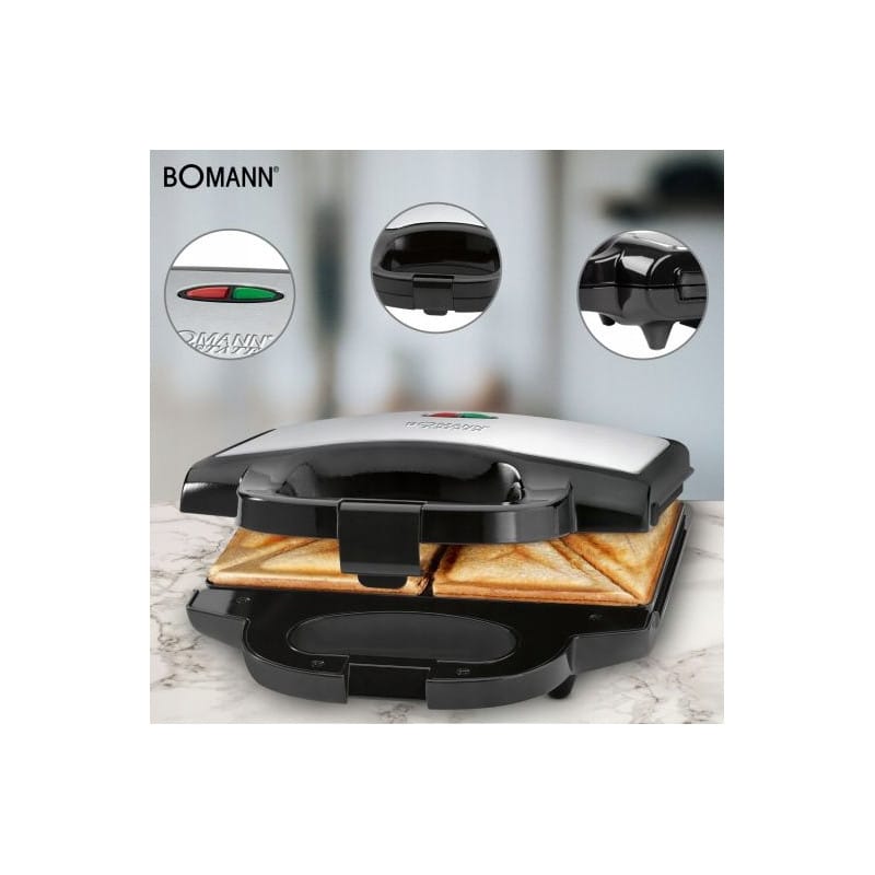 NAJWYŻSZEJ JAKOŚCIOPIEKACZ TOSTER DO KANAPEKRENOMOWANEJ FIRMY BOMANNMODEL : ST 1372Nowoczesny opiekacz dla miłośników pysznych, ciepłych kanapek z zapiekanym nadzieniem. Za sprawą dużej mocy przygotuje apetyczną przekąskę już w kilka chwil.Opiekacz BOMANN o mocy 750 W z nieprzywierającą powłoką. Posiada dwie lampki kontrolne informujące o dopływie prądu i grzaniu oraz automatyczny regulator temperatury. Opiekacz posiada zabezpieczenie przed przegrzaniem oraz uchwyt z zatrzaskiem i izolacją termiczną gwarantujący proste, a zarazem bezpieczne użytkowanie urządzenia.Smaczne i pyszne tosty przygotujesz w kilka minut w ładnym opiekaczu ze wstawką ze stali nierdzewnej. Lampka do pieczenia informuje o nagrzaniu trójkatnych płyt warstwowych z powłoką nieprzywierającą. System zamykania blokady sprawi, że tosty będą chrupkie z wierzchu i delikatne w środku.Zasmakujesz w rozgrzanych tostach z roztopionym, ciągnącym się serem w środku. Oryginalne trójkątne tościki w szybki i łatwy sposób przygotujesz swoim pociechom dzięki trójkątnym panelom warstwowym. Dwie lampki kontrolne zasilania i ogrzewania ułatwią rozpoznanie czy opiekacz jest odpowiednio nagrzany.Tosty przygotujesz w bezpieczny sposób, ponieważ opiekacz posiada izolowany termicznie uchwyt oraz gumowe nóżki zapewniające stabilność.Płyty warstwowe z powłoką nieprzywierającą2 lampki kontrolne zasilania i ogrzewania (lampka do pieczenia)System zamykania z blokadąwysoka stabilność dzięki gumowym nóżkomWstawka ze stali nierdzewnejPanele warstwowe podzielone w kształcie trójkątówIzolowany termicznie uchwytAutomatyczny regulator temperaturyOchrona przed przegrzaniemWymiary urządzenia: 235 x 95 x 235 mm (S x W x G)Wymiary opakowania: 258 x 263 x 110 mm (S x W x G)Pobór mocy 750WWaga ok.1,15kgNapięcie zasilania 220–240 V, 50/60 Hzslimtex