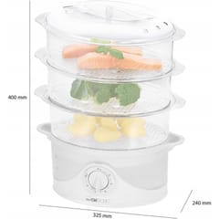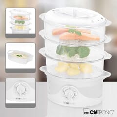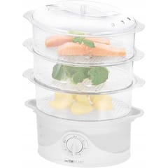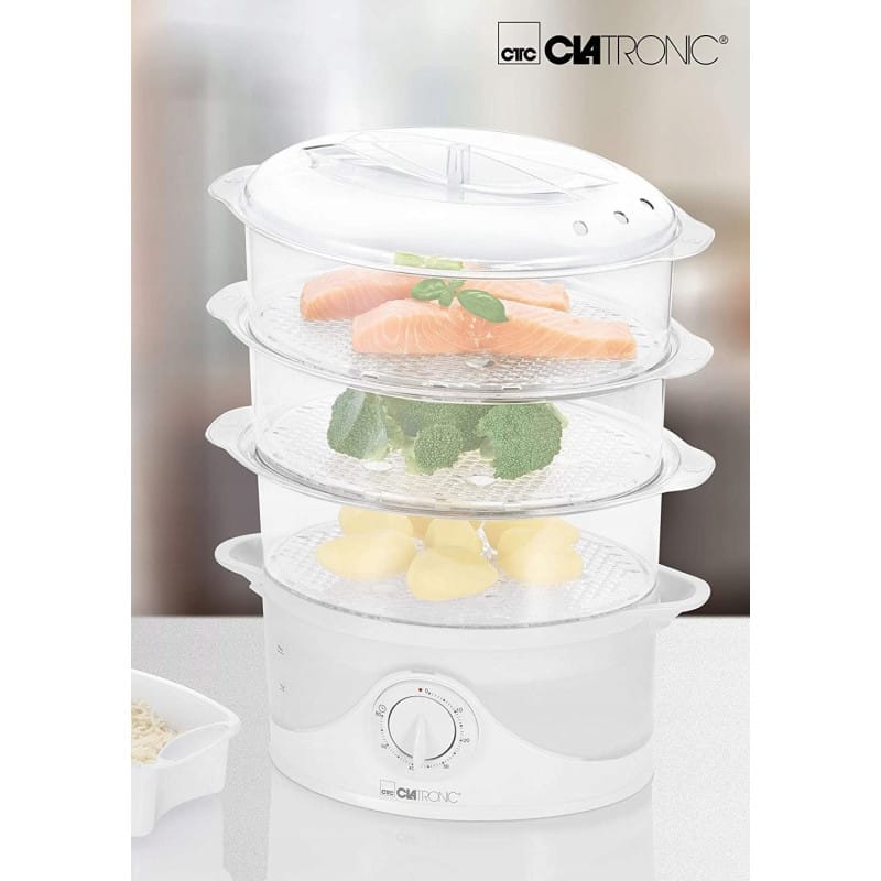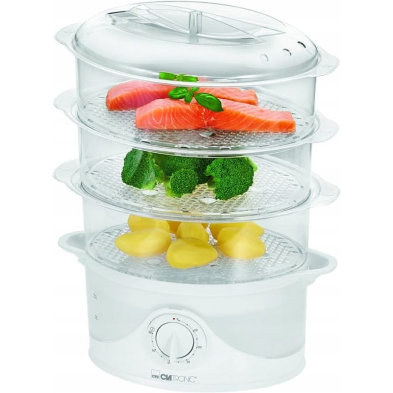 NAJWYŻSZEJ JAKOŚCIPAROWAR DO GOTOWANIANA PARZERENOMOWANEJ FIRMY CLATRONICMODEL: DG 3665Parowar Clatronic DG 3665 to niezwykle praktyczne urządzenie, które ułatwi przygotowywanie ulubionych dań i jednocześnie pozwoli im zachować wszystkie wartości odżywcze.Trzy pojemniki szybkowaru oraz dodatkowe naczynie na ryż to możliwość przygotowania w tym samym czasie całego dania.Parowar Clatronic DG 3665 sprawi, że Twoje potrawy będą zawsze zdrowe i pełne wartości odżywczych. Mocy 800 W błyskawicznie podgrzeje wodę i wytworzy parę.Duża pojemność parowaru sprawi, że podczas jednego procesu gotowania możesz przygotować obiad dla całej rodziny. Trzy pojemniki szybkowaru oraz dodatkowe naczynie na ryż to możliwość przygotowania w tym samym czasie całego dania.Urządzenie do łagodnego gotowania na parze pozwalającego na zachowanie witamin w potrawach3 pojemniki do gotowania na parze, 1 pokrywka, 1 miska do ryżuPółprzezroczysty zbiornik wody 1.5LKorytko ociekowe do zbierania płynówMożliwość dolewania wody w czasie pracyWskaźnik poziomu wodyZegar 60-minutowyOchrona przed przegrzaniemŁatwe w czyszczeniuZasilanie: 220-240V~, 50Hz, 800WWymiary (ok. szer. x wys. x gł.) i wagaUrządzenie: 325 x 400 x 240 mm; 1.27 kgOpakowanie: 272 x 265 x 272 mm; 1.90 kgslimtex