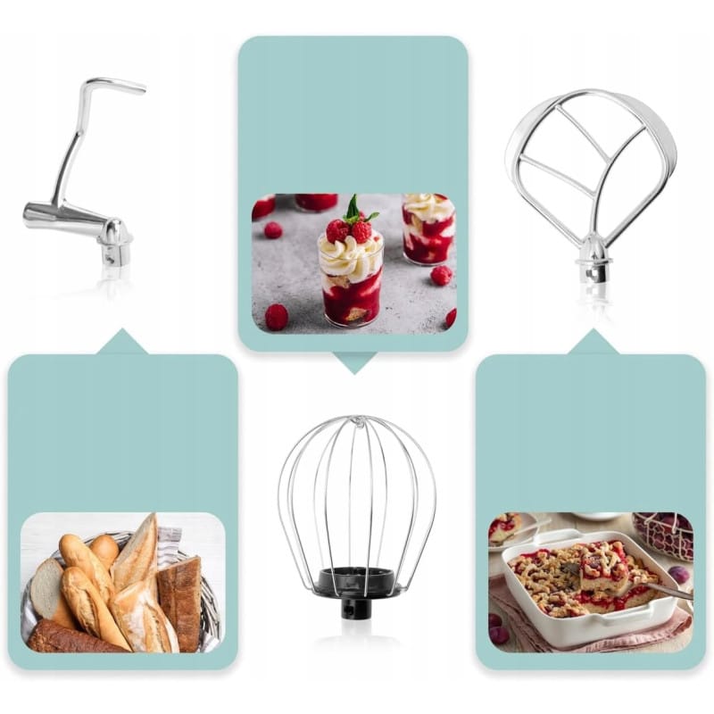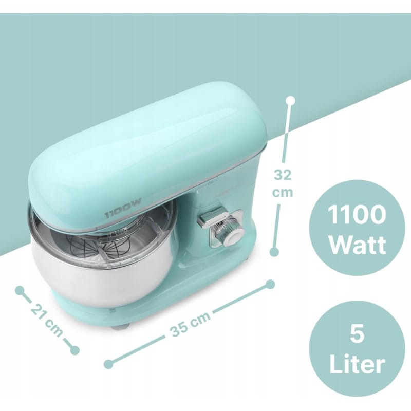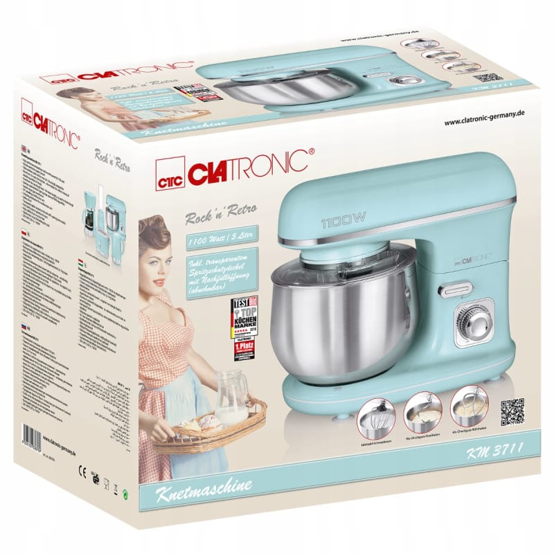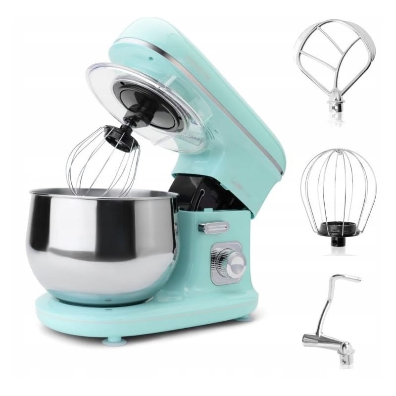 NAJWYŻSZEJ JAKOŚCIPLANETARNY ROBOT KUCHENNYUGNIATARKARENOMOWANEJ FIRMY CLATRONICMODEL: KM 3711KOLOR MIĘTOWYNiezwykle mocny i niezawodny robot Clatronic KM 3711 to skuteczne wsparcie w Twojej kuchni. Już nie musisz ręcznie wyrabiać ciasta lub ubijać piany z białek. Nasz wielofunkcyjny robot kuchenny zrobi to za Ciebie.Dzięki temu urządzeniu oszczędzasz czas, a przygotowywanie ulubionych ciast i biszkoptów jest niezwykle łatwe oraz przyjemne. Wystarczy dobrać odpowiednią końcówkę robota i włączyć.Robot kuchenny Clatronic KM 3711 poradzi sobie nawet z najcięższym zadaniem, ponieważ jego moc to aż 1100 W. W połączeniu z wysokiej klasy mieszadłem hakowym z odlewu aluminiowego jest w stanie wyrobić nawet dużą ilość ciasta (maksymalnie 3 kg) i to w dodatku bardzo gęstego. Nie musisz się obawiać, że robot ulegnie przy tym uszkodzeniu, ponieważ jego obroty są elektroniczne dostosowywane do obciążenia. Bez problemu przygotujesz również ciasto na biszkopt i ubijesz pianę dzięki solidnej trzepaczce stalowej.Czyszczenie robota jest równie łatwe, jak jego obsługa – bez problemu wyjmowana misa i jej pokrywka, odblokowywane ramię ułatwiające usuwanie zabrudzeń. W ZESTAWIE 3 KOŃCÓWKI :hak do mieszania - umozliwiaja równomierne wymieszanie również większych ilości ciastahak do ugniatania - do ciężkich ciast, np. drożdżowego lub na chlebtrzepaczka ze stali szlachetnej do luźnych mas, np. piany z bialka lub ciasta biszkoptowegoPlanetarny ruch mieszadełBezstopniowa elektroniczna regulacja prędkości + funkcja pulsacyjnaFunkcja elektrycznego timeraMoc: 1100WMiska o pojemności 5l ze stali nierdzewnej mieści maks. 2,5-3kg ciastaMieszadło hakowe z odlewu aluminiowego – zdolne do mieszania nawet z większych objętości ciastaHak do wyrabiania ciasta z odlewu aluminiowego – do gęstego ciasta, takiego jak ciasto drożdżowe lub ciasto chleboweTrzepaczka ze stali szlachetnej do przygotowywania puszystych biszkoptów i luźnej piany z białkaStały poziom wydajność dzięki elektronicznej regulacji obrotów odpowiednio do obciążenia35° przestawne obrotowo ramię wielofunkcyjnePokrywa z zabezpieczeniem przed rozpryskiwaniem i z otworem wlewowymMechanizm odblokowywania ramienia wielofunkcyjnegoPrzezroczysta pokrywa z otworem do napełniania (zdejmowana)Wyjątkowo łatwa obsługa i czyszczenieOdpowiednia stabilność dzięki nóżkom z przyssawkamiUchwyt do szybkiego mocowania narzędziKomora na kabel w części bazowejslimtex