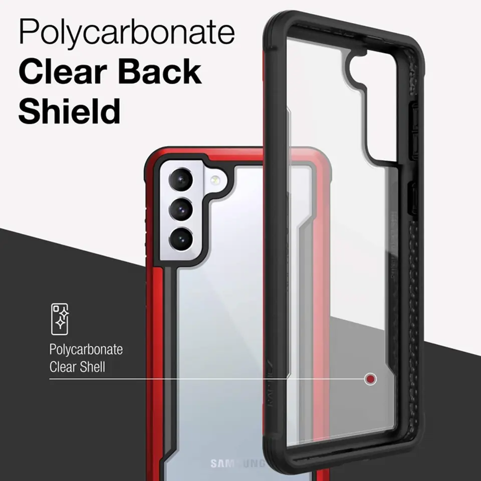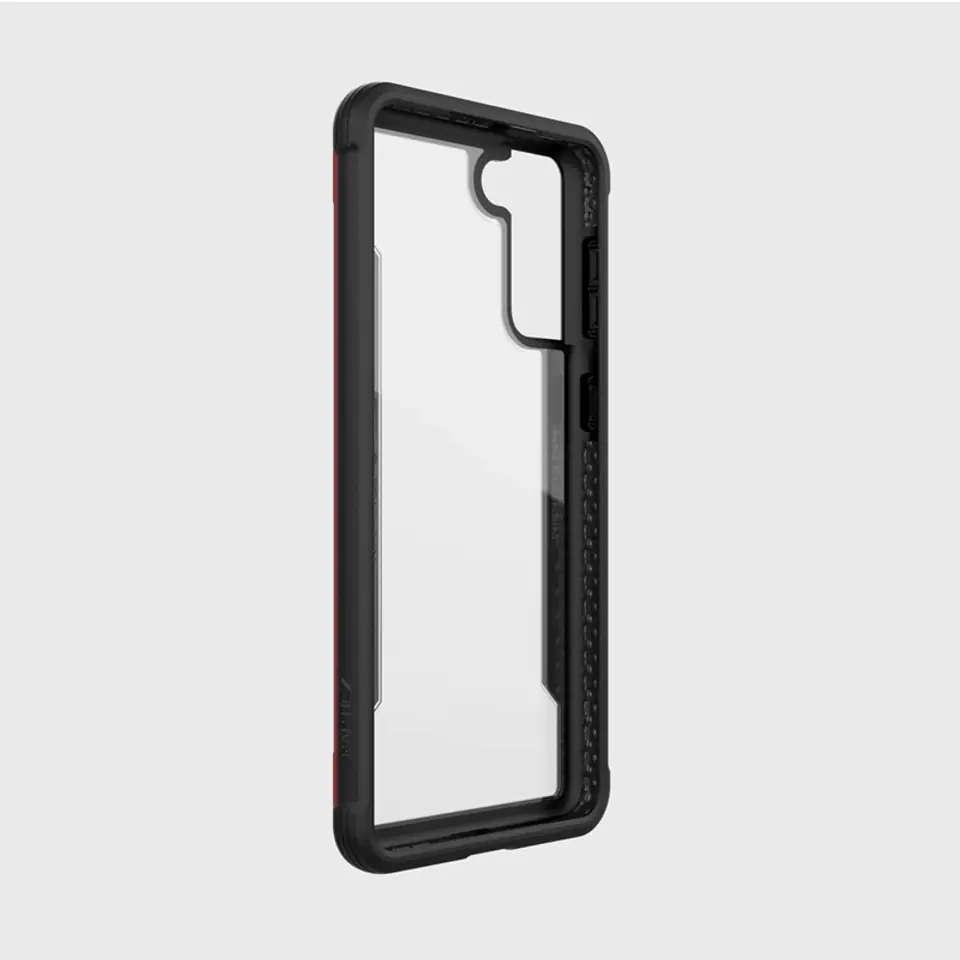 Aluminiowa obudowa ochronna Raptic Shield z wojskowym certyfikatem MIL-STD-810G. Hybrydowa konstrukcja z anodyzowanego aluminium oraz przezroczystego polikarbonu oferuje podwyższony stopień ochrony podczas upadków z wysokości nawet 3 metrów. Wewnętrzną część obudowy wraz z przyciskami bocznymi wykonano z termoplastycznego materiału TPU, tak aby telefon nie miał bezpośrednio kontaktu z metalową ramką etui. Specjalny bąbelkowy wzór absorbuje i rozprasza dodatkowo siłę uderzenia podczas upadku na twarde podłoże.