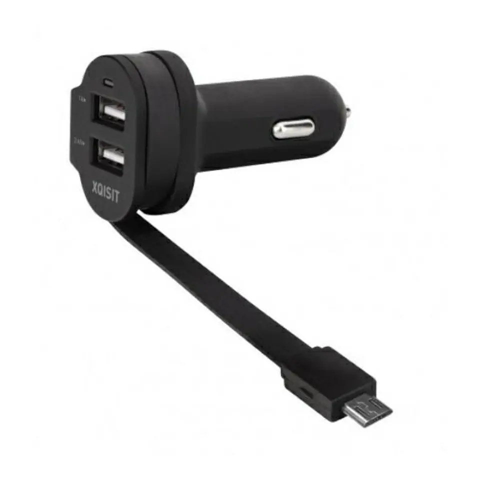 Xqisit ład. sam. 6A Dual USB+microUSB car charger czarny/black 20425
