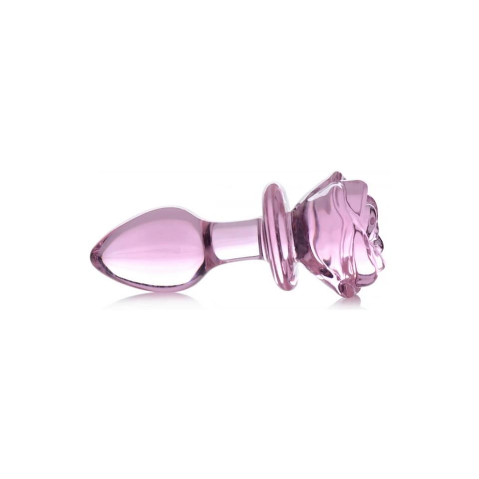 XR Brands Rose Plug średni – szklany korek dekoracyjny z borokrzemianu