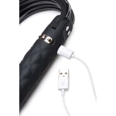 - Innowacyjny design: Model łączy w sobie funkcję wibrującego silikonowego akcesorium z praktycznym uchwytem oraz dekoracyjnym biczem, zapewniając wiele możliwości zastosowania.