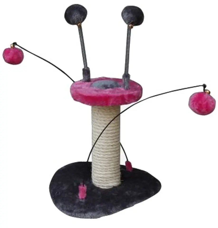 Drapak Mini UFODrapak o charakterystycznym kształcie to ciekawy prezent dla Twojego kota.Piłeczki przymocowane do drapaka przyciągną uwagę kota.Eleganckie wykończenie pluszem w dwóch kolorach - różowym i szarym.Słupek jest pokryty sizalem.Wymiary: