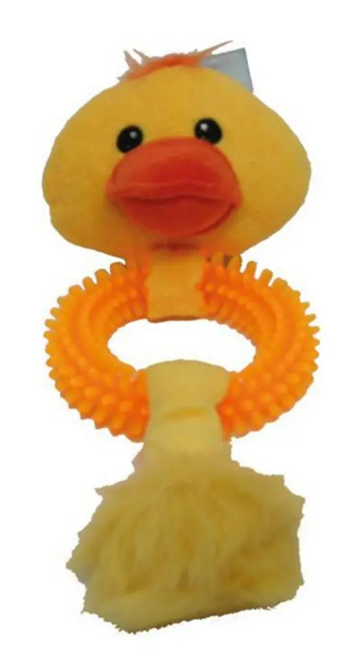 Pluszowa kaczka jest wspaniałą maskotką dla psa.Wypustki na kółku masują dziąsła podczas gryzienia.