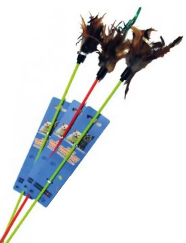Zabawka dla kota - patyk z piórkiem.Przeznaczona do wspólnej zabawy z właścicielem.Polecana zwłaszcza dla kotów niewychodzących.
