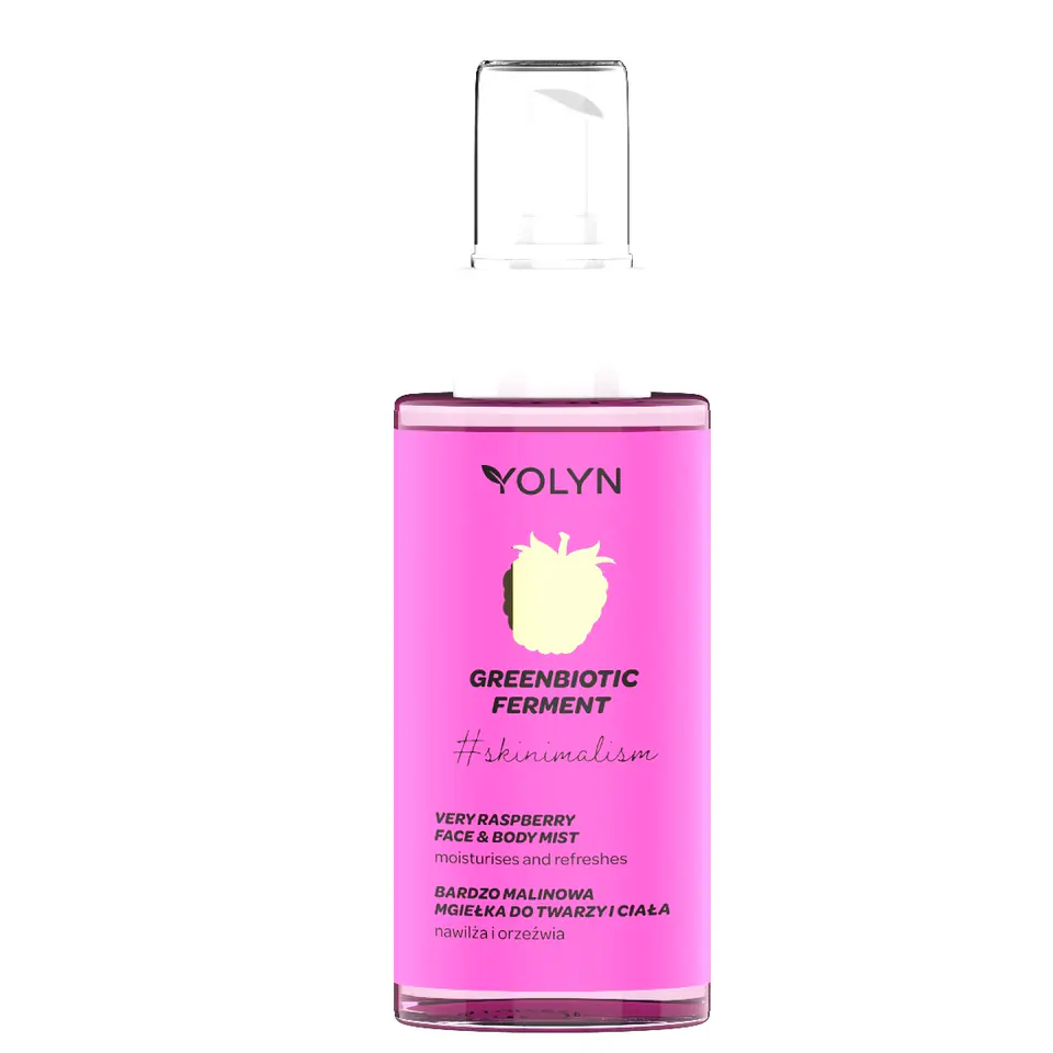 Czy każdego dnia jest malinowo? Z YOLYN tak, i to bardzo! Bardzo malinowa mgiełka YOLYN to garść pozytywnych emocji i duża dawka niezapomnianych wrażeń. Ferment greenbiotic wzmacnia mikrobiom skóry, zapewniając jej barierę ochronną. Formuła z malinowym ekstraktem ekspresowo nawilża i orzeźwia.